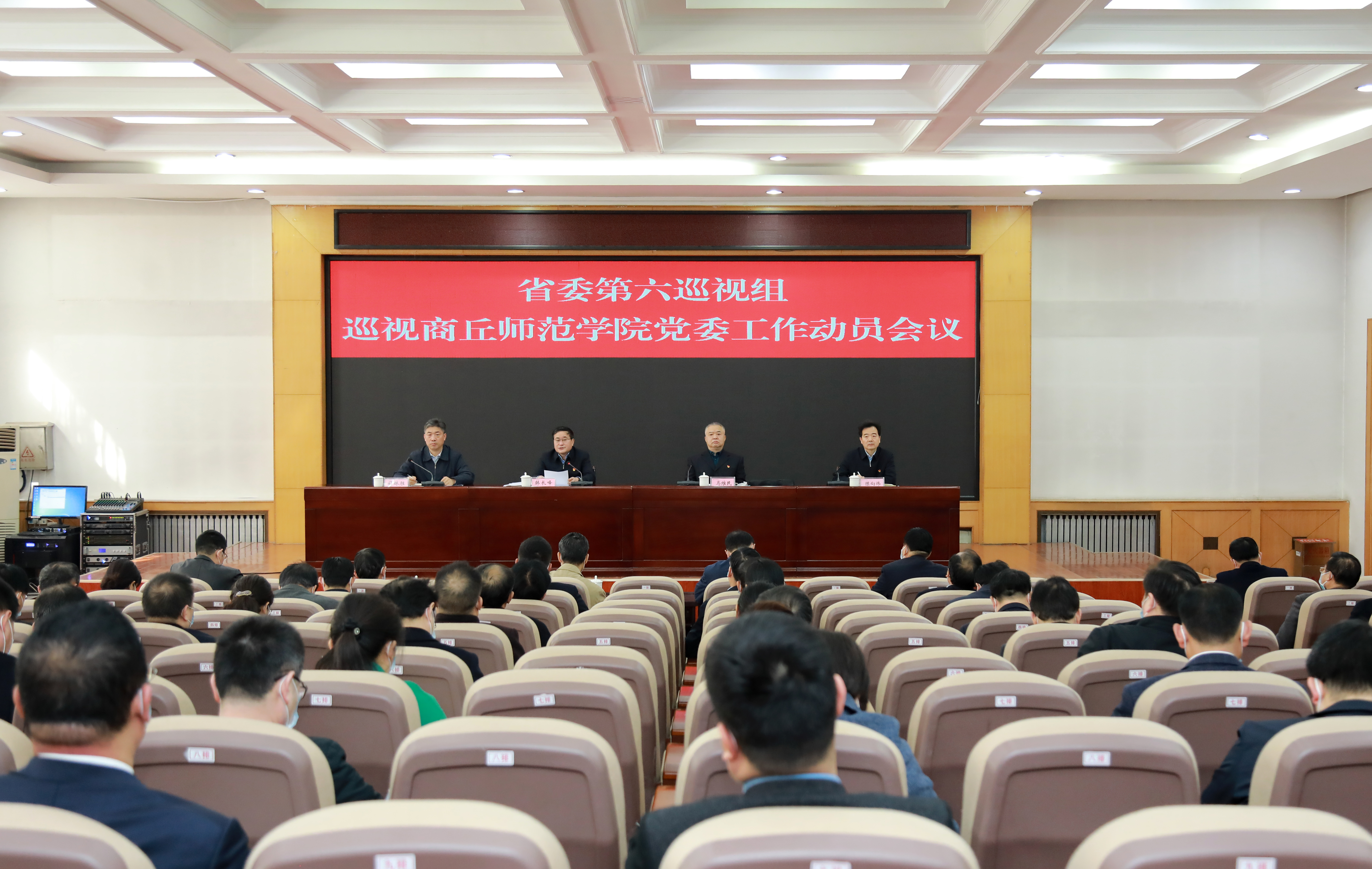 省委第六巡视组副组长马维民及巡视组其他成员出席了会议。校领导,校党委委员、纪委委员,校纪委和组织部领导班子成员,学校各部门及二级学院主要负责人参加了会议。
