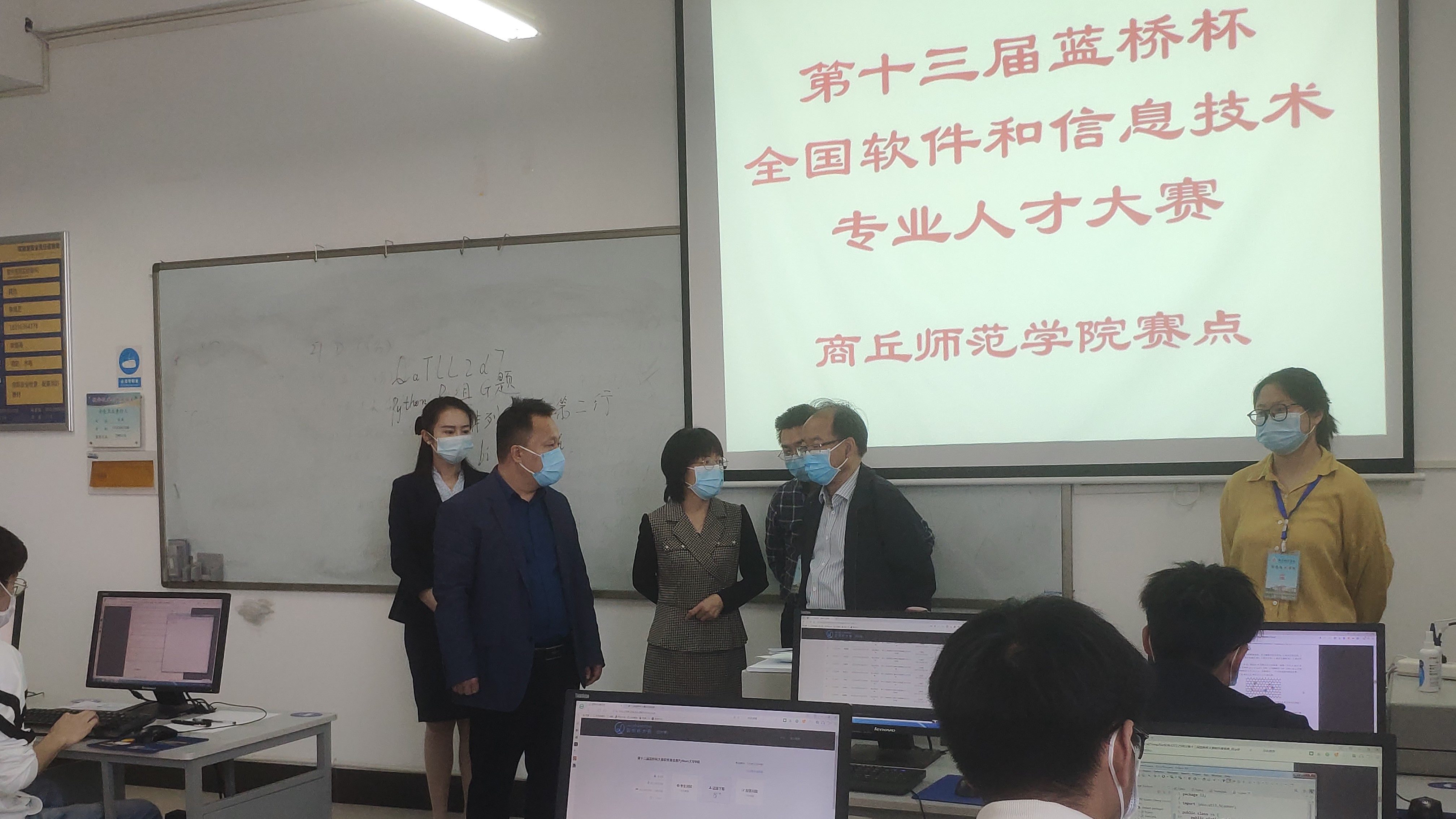 4月9日,由工业和信息化部人才交流中心举办的面向全国高校大学生的IT类学科竞赛“蓝桥杯”在玩滚球官网三商楼正式开赛,玩滚球官网作为本次大赛的分赛点,信息技术学院承担具体组织工作。副校长郭文佳、信息技术学院相关负责人到比赛现场做指导工作。