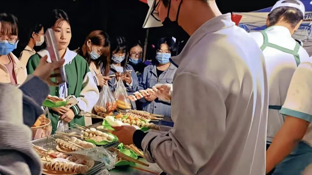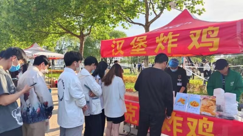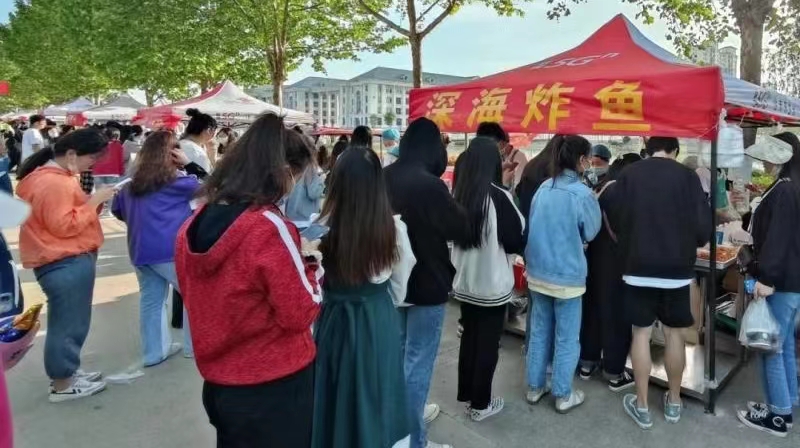 封闭管理期间为丰富师生的业余生活, 4月30日、5月1日晚,学校后勤服务中心推出了“夜市小吃进校园”活动。