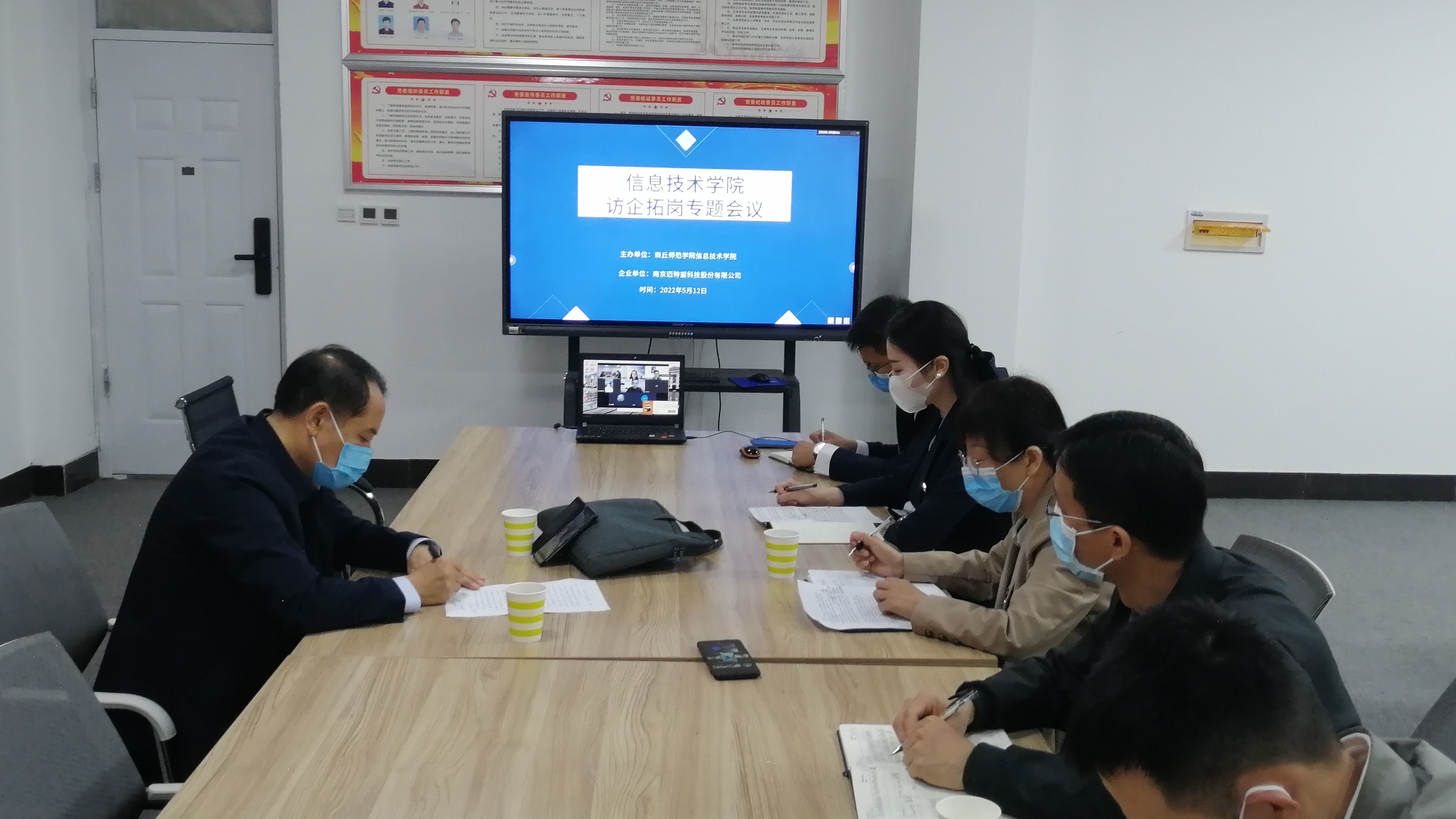 5月12日,由信息技术学院、南京迈特望科技股份有限公司联合召开的访企拓岗专题线上会议在玩滚球官网三商楼会议室召开。副校长辛作义、公司董事印志,人力资源部主管胡莉,信息技术学院师生代表参加了会议。曙光大数据学院企业方老师受邀出席了会议。