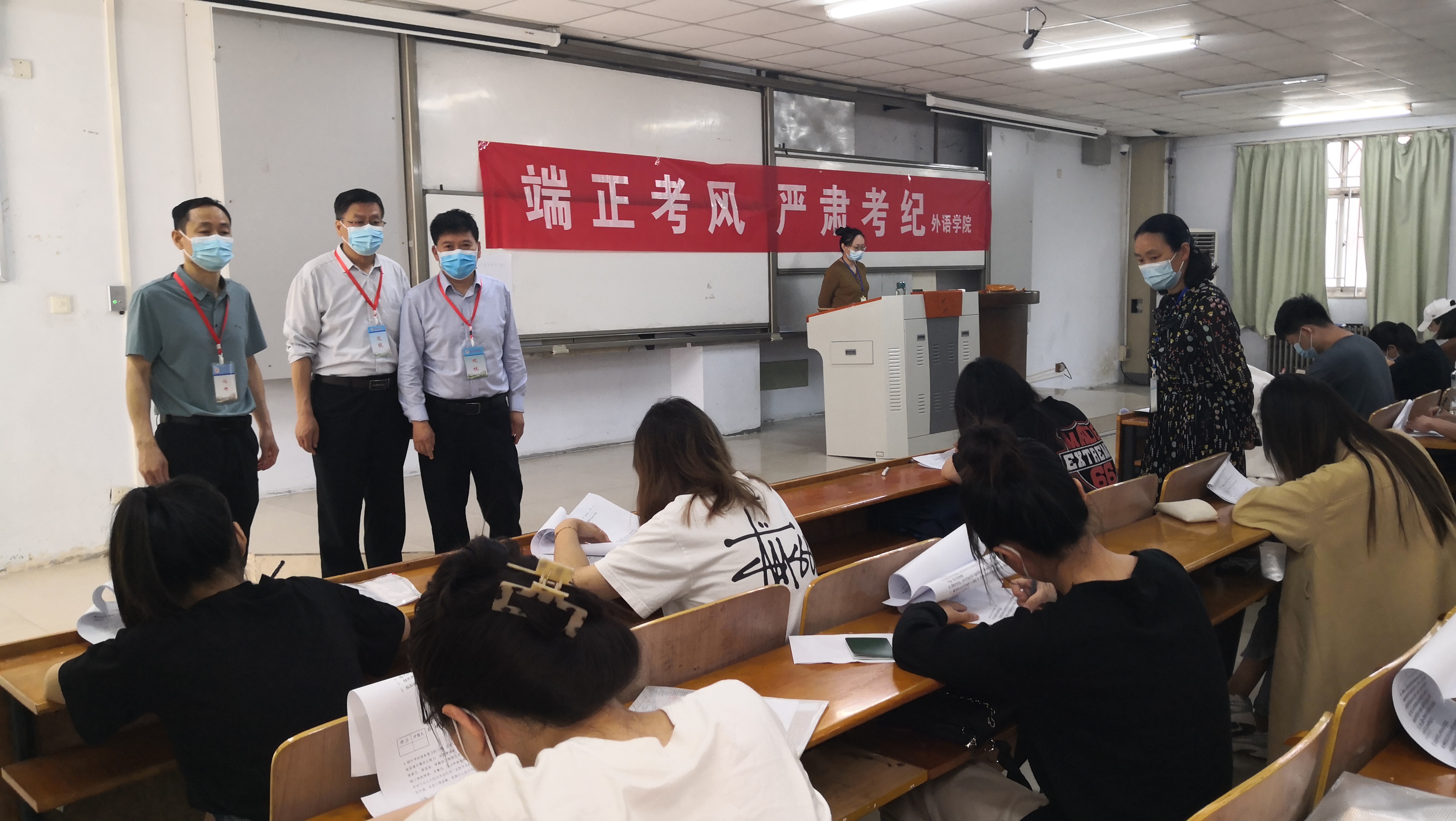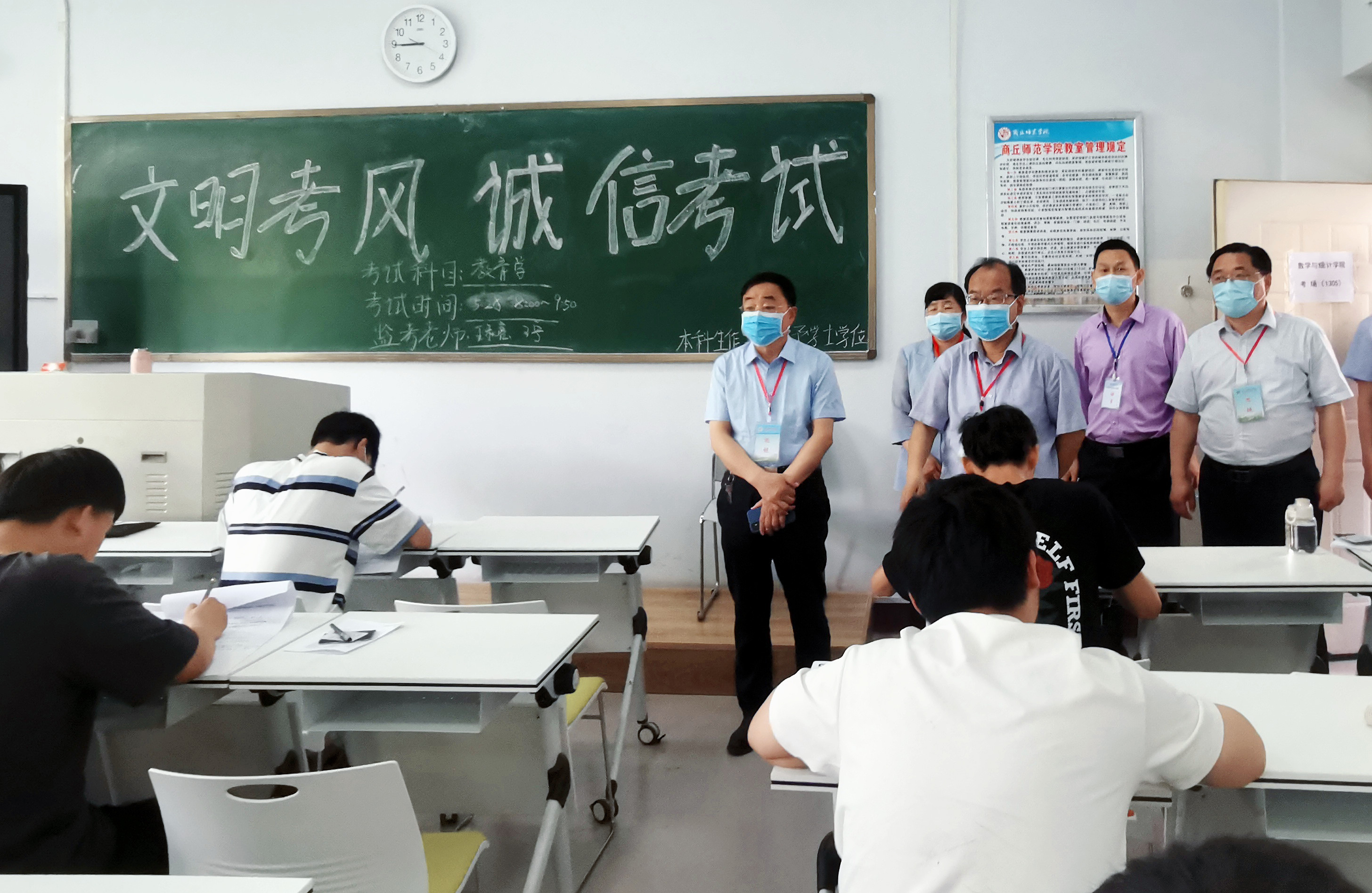 5月28日上午,玩滚球官网2022年春季学期期末考试正式拉开帷幕,为强化考试的组织管理、加强考风建设工作,学校领导高度重视,校长陈向炜、校党委副书记朱伟、吴金山,副校长徐茂田、辛作义,纪委书记李永春、副校长郭文佳、程功鹏、张箭,会同党政办、宣传部、学生处、教务处等部门负责人及相关科室人员分三个巡视组对梁园校区、睢阳校区今天336个场次的考试进行了巡视。同时,校级督导和各学院领导也分别组成巡视组进行了巡视。