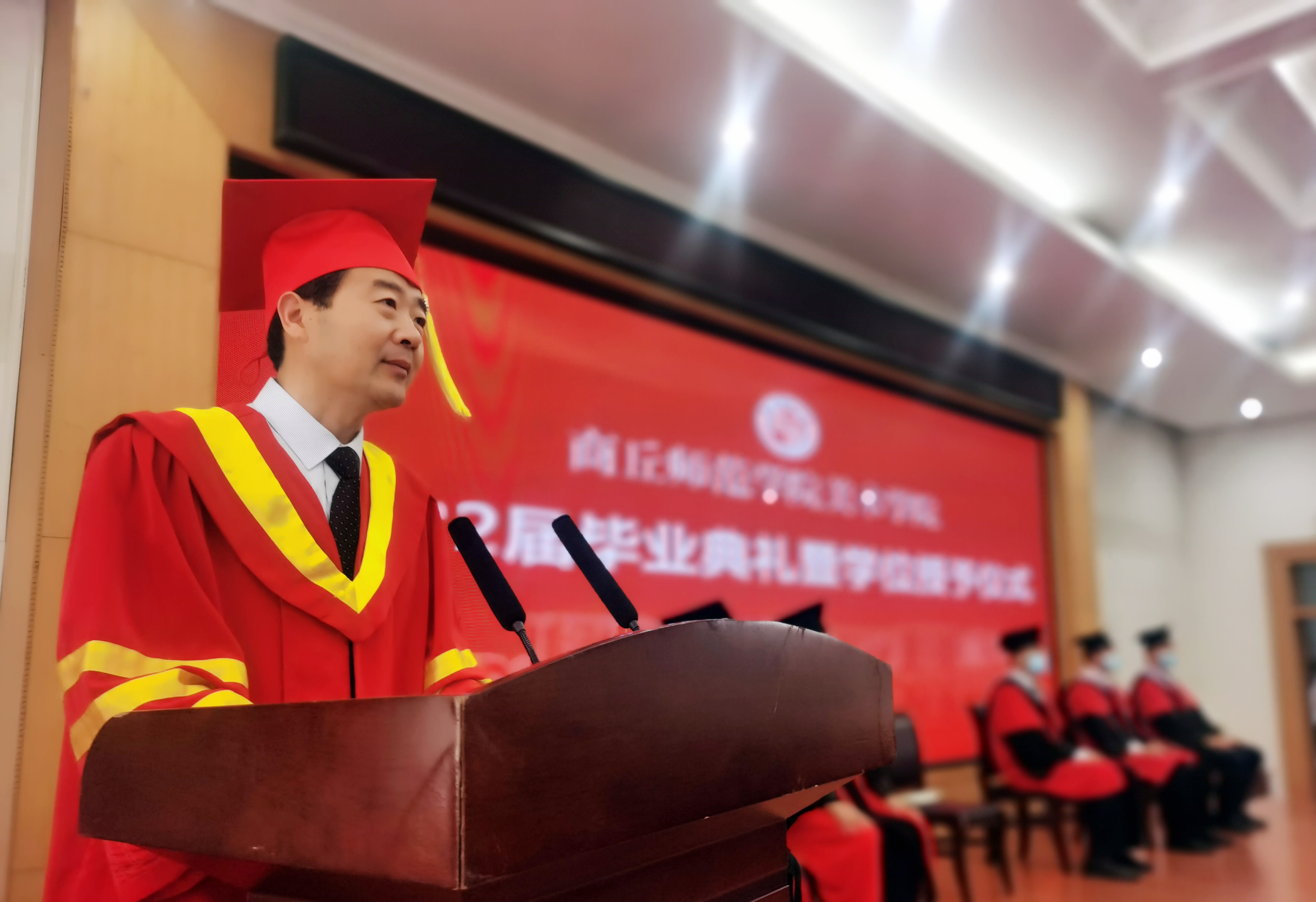 毕业典礼暨学位授予仪式在雄壮的国歌声中开幕。