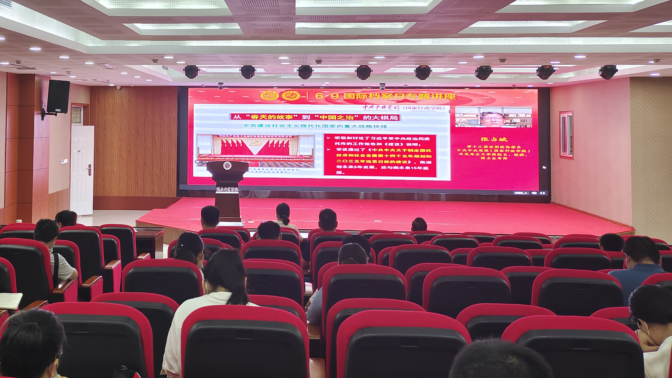 本次讲座为“喜迎二十大·档案颂辉煌”国际档案日系列宣传活动之一,由国家档案局主办,全国政协委员、中共中央党校(国家行政学院)马克思主义学院院长张占斌教授主讲。张占斌以“构建新发展格局” 为主题,从新时代新发展阶段的重大战略部署、中国特色社会主义政治经济学的最新成果、构建新发展格局的内在逻辑、构建新发展格局的路径选择四个方面进行详细阐释。