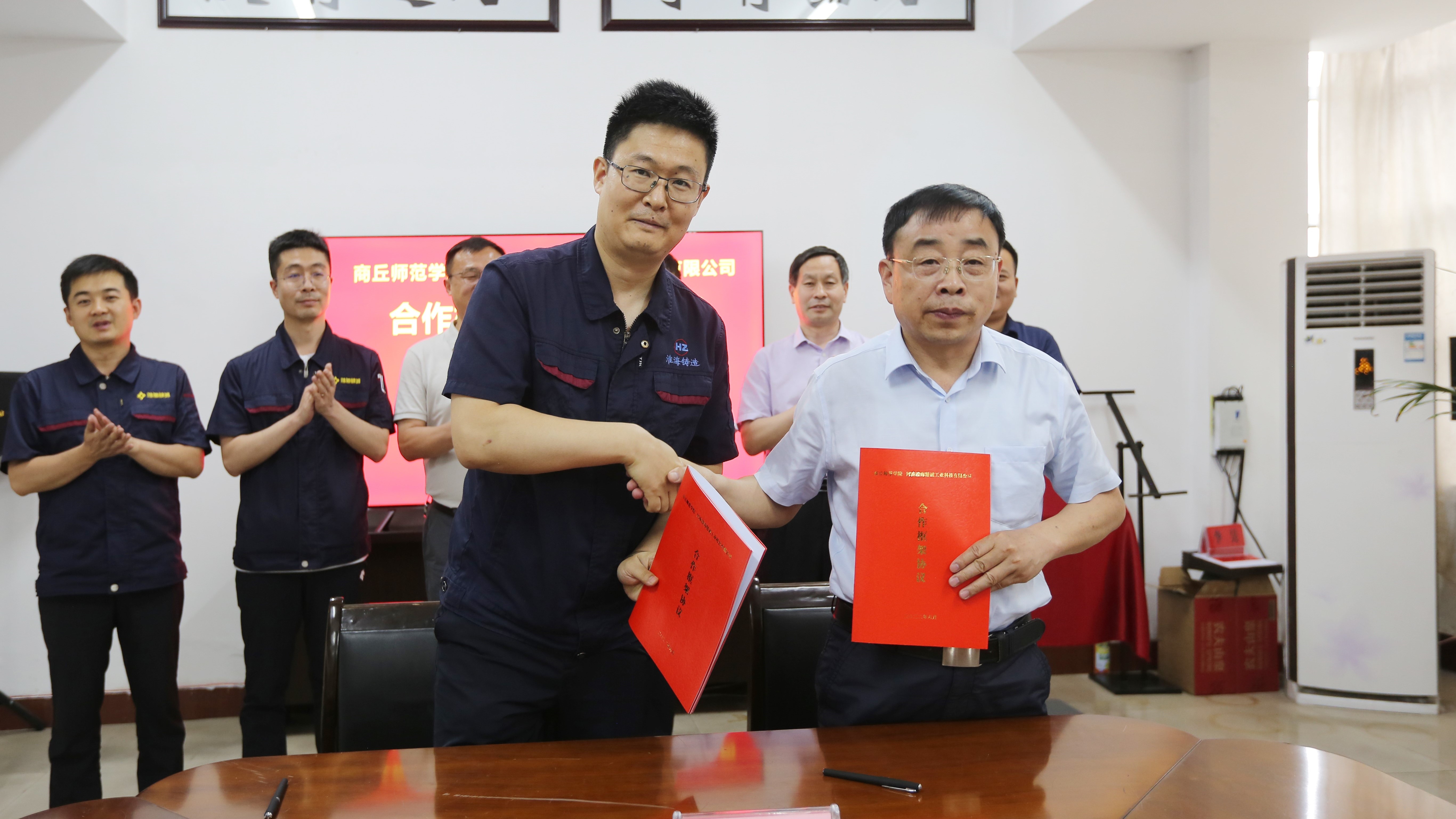 6月11日,玩滚球官网与河南淮海精诚工业科技有限公司举行共建“智能制造零部件研发中心”签约仪式。校党委副书记吴金山、副校长徐茂田,科研处、校地合作与服务中心、电子电气工程学院负责人,商丘市科协副主席孙锦昌和夏邑县委常委、办公室主任陶明星,以及会亭镇党政负责人、河南淮海精诚工业科技有限公司企业总经理程凯等出席签约仪式。