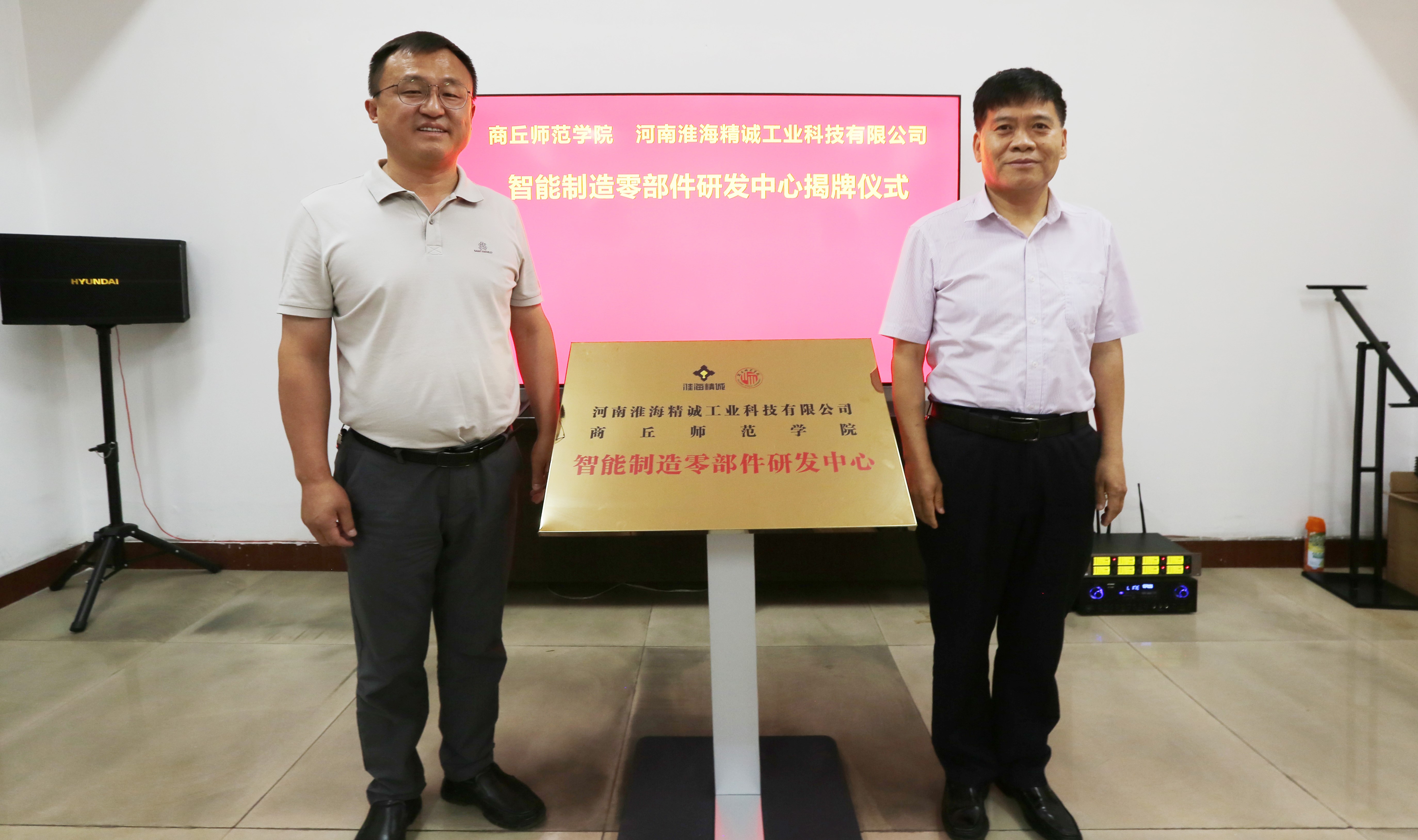 徐茂田和河南淮海精诚工业科技有限公司总经理程凯签订合作共建研发中心协议。吴金山和王文涛共同为智能制造零部件研发中心揭牌。