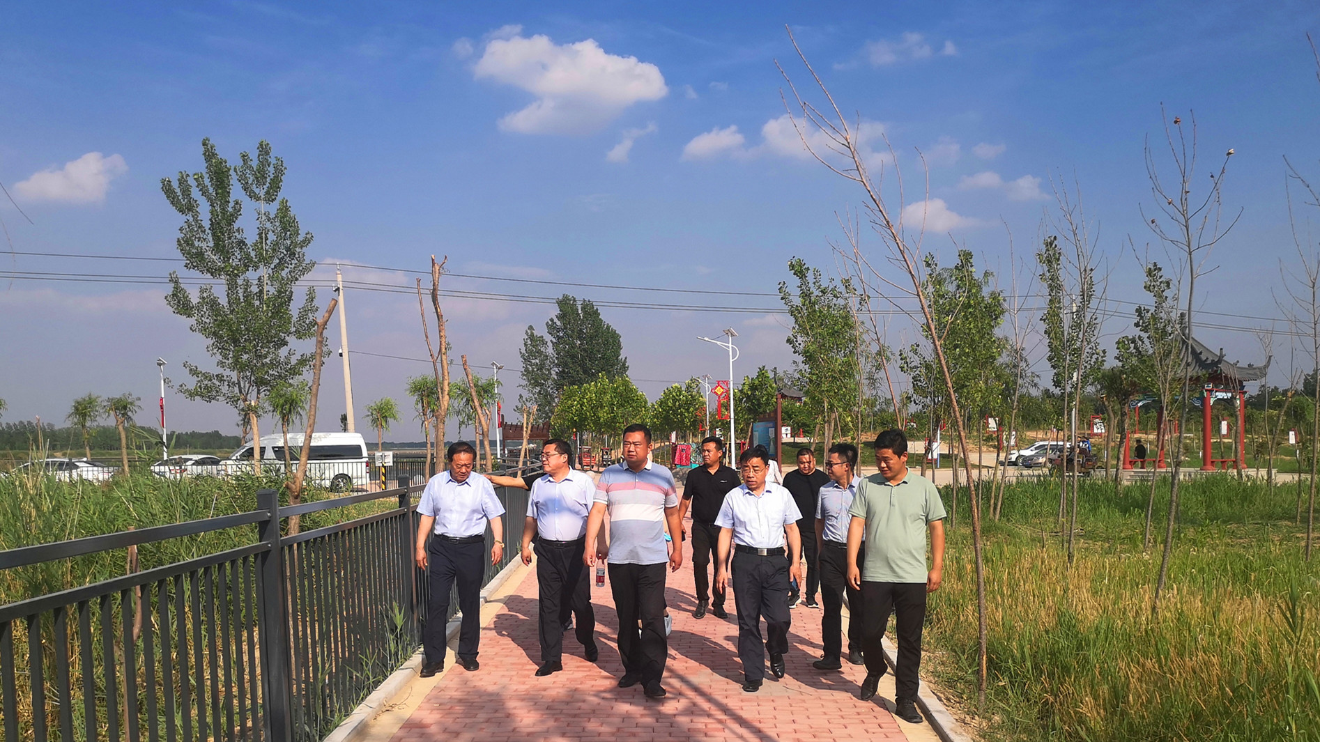 为深入贯彻落实黄河流域生态保护和高质量发展战略,6月12日,副校长徐茂田带队赴梁园区孙福集乡黄河故道进行实地考察。孙福集乡党委书记程旭华、副书记吴正涛、副乡长郑国庆、中心校校长耿传明,玩滚球官网党政办、校地合作与服务中心、测绘与规划学院、黄河故道生态保护研究中心等单位负责人及相关教师参加了考察。