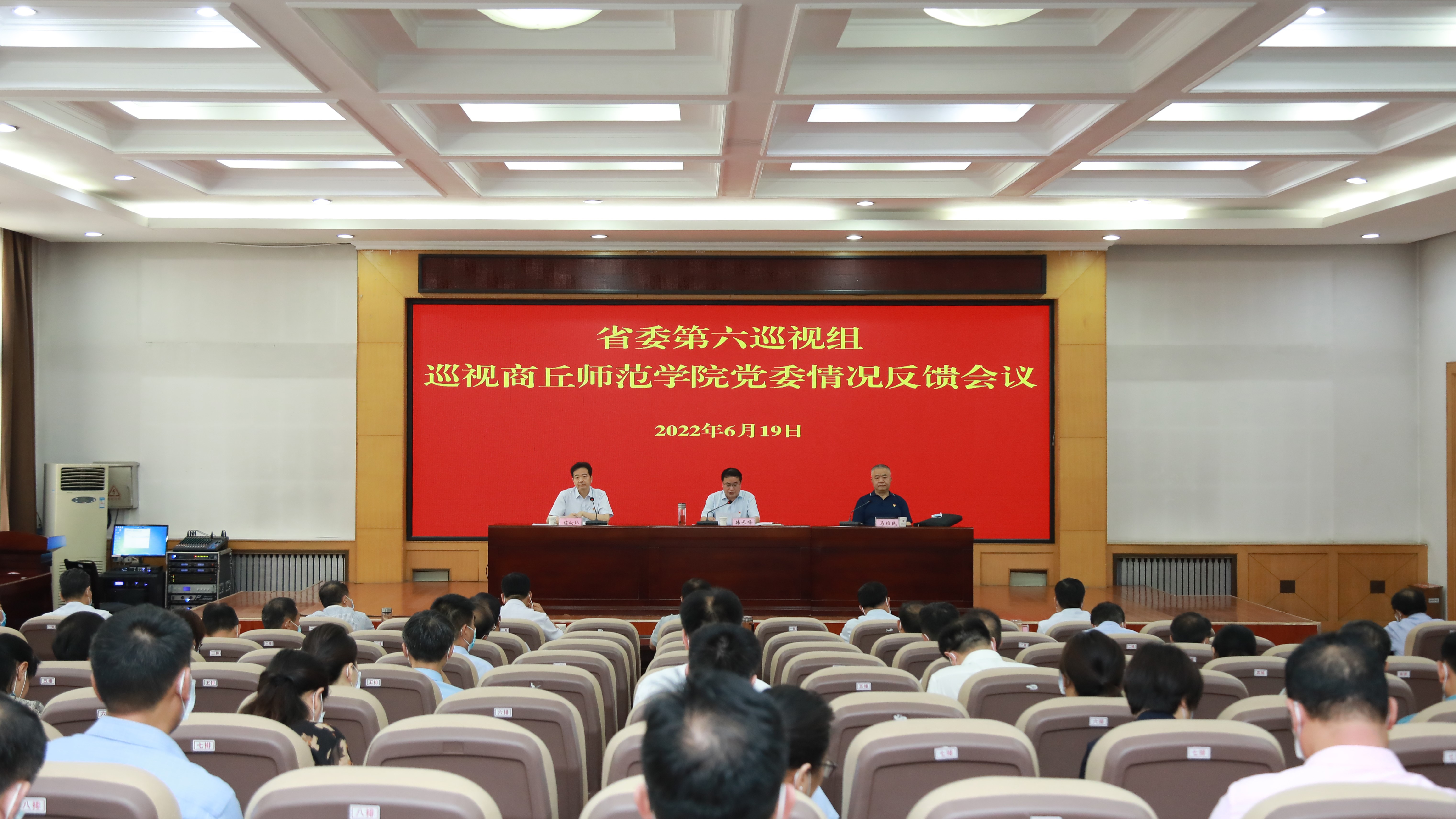 6月19日,省委第六巡视组向玩滚球的十大正规平台反馈巡视情况。反馈会议之前,巡视组向玩滚球的十大正规平台党委副书记、校长陈向炜简要反馈了巡视情况。会上,省委第六巡视组副组长、二级巡视员马维民反馈了巡视情况,省委第六巡视组组长、正厅级巡视专员韩长峰对巡视整改工作提出要求。陈向炜主持会议并做了表态发言。