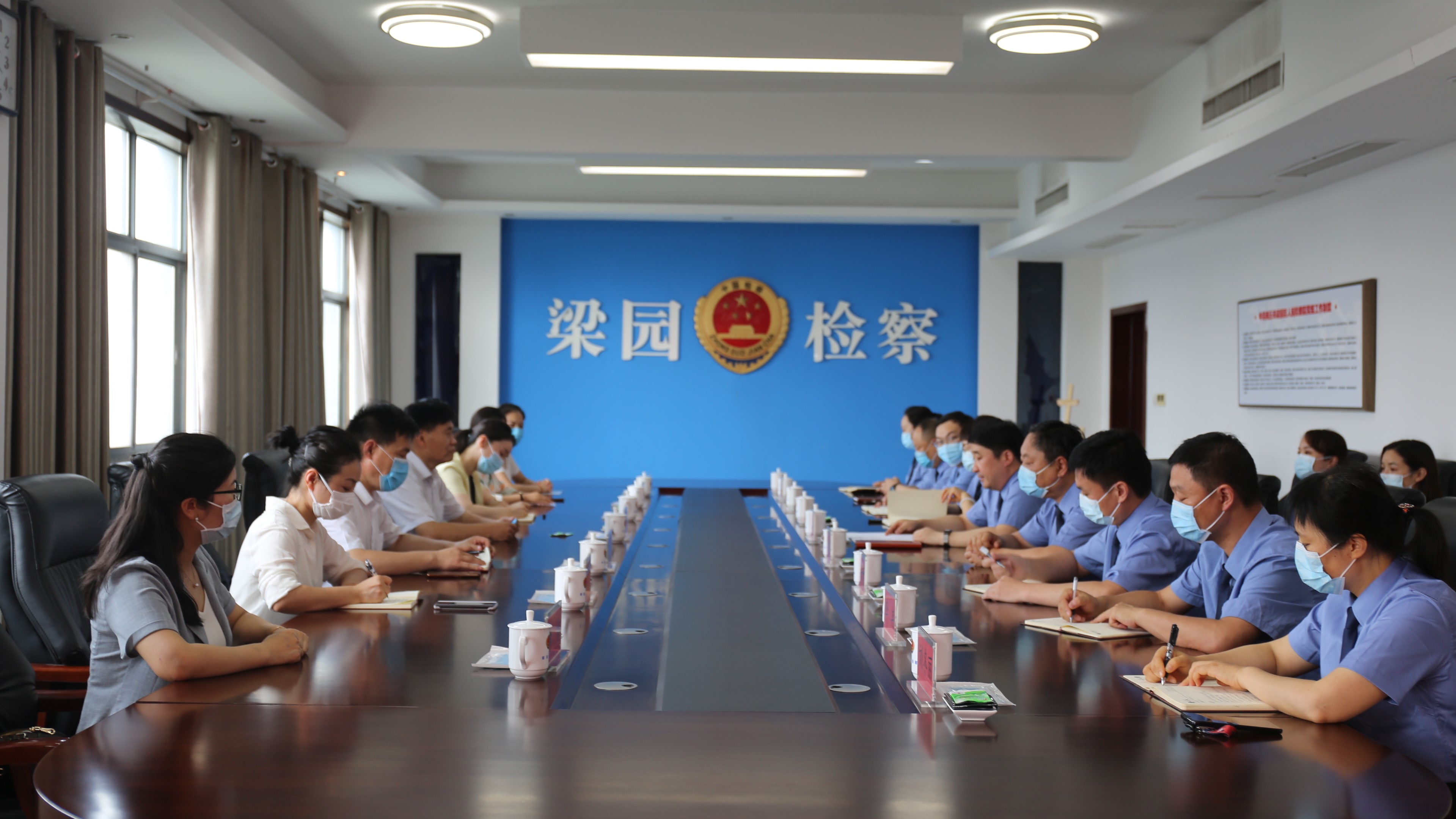 6月22日下午,校党委副书记吴金山带队到梁园区人民检察院开展访企拓岗促就业活动。梁园区人民检察院检察长孟萌,副检察长赵秋雷、沈艳丽、张兴开,政治部主任刘鲲,检察院中层干部,法学院班子成员和有关系(室)主要负责同志参加活动。
