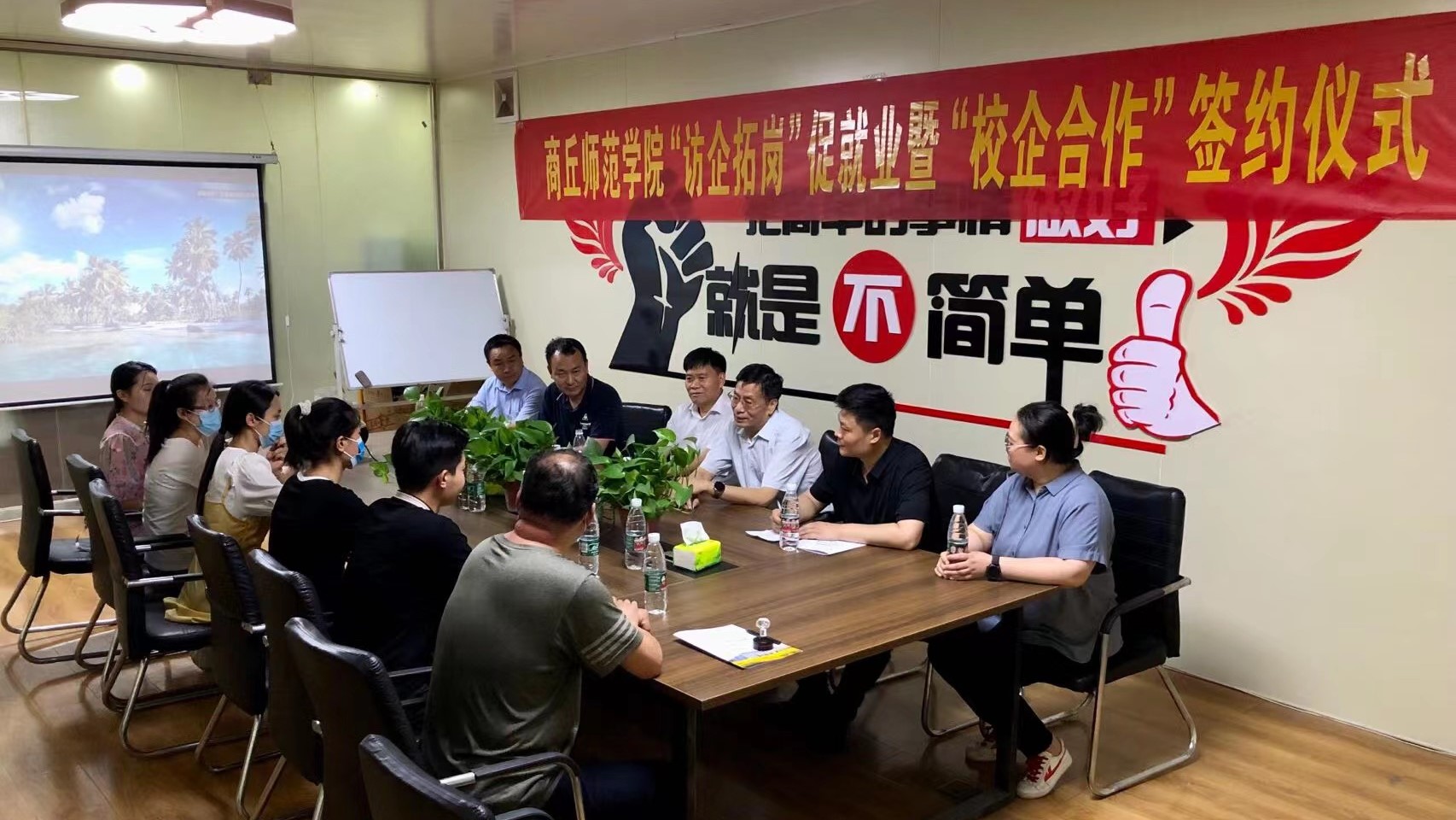 6月22日下午,校党委副书记吴金山、校纪委书记、监察专员李永春到河南艺翔标识标牌有限公司开展“访企拓岗”暨就业实习基地签约活动。公司董事长王山昆、总经理王夏昆、厂长赵汇圆、艺术设计学院党政领导班子成员参加活动。