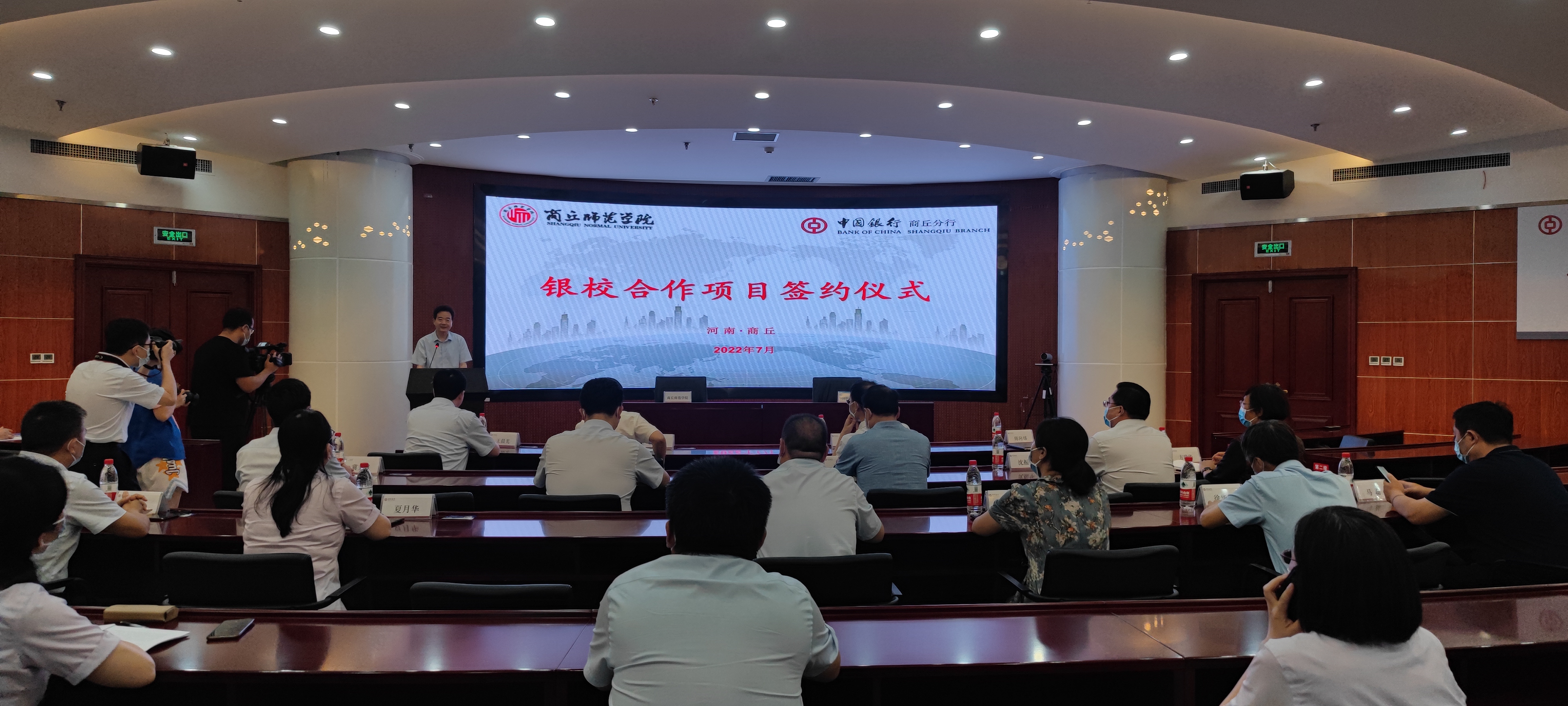 7月13日,校长陈向炜、副校长辛作义带领党政办、财务处、审计处、国资处、信息化管理中心等职能部门负责人赴中行商丘分行参加玩滚球官网与中行商丘分行银校合作签约仪式,开展“访企拓岗促就业”活动。商丘市副市长袁道强、政府副秘书长闫辉,中国银行商丘分行行长王晨光、副行长李勇、纪委书记冀文超、副行长刘广志及相关部门负责人参加签约仪式。