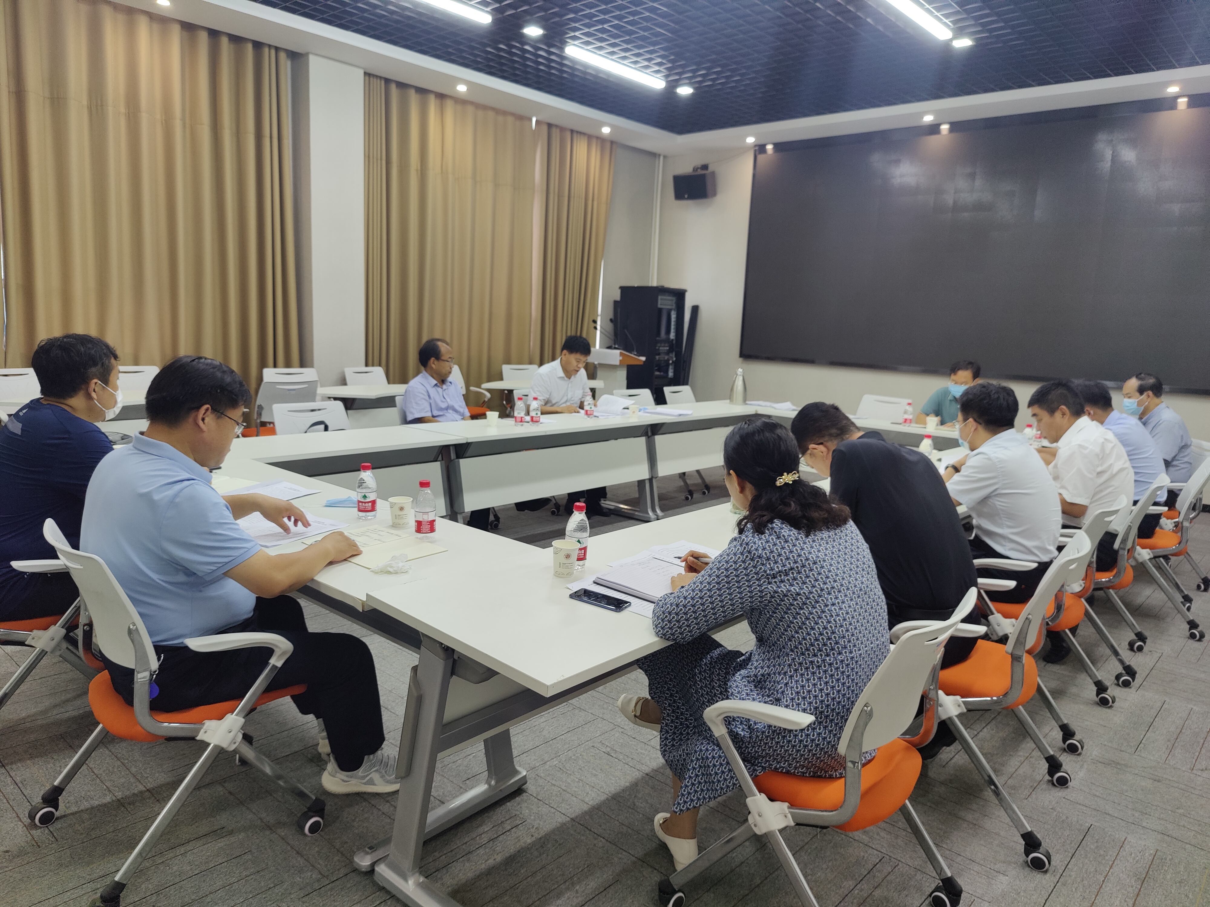 8月15日,玩滚球官网在梁园校区三商楼143会议室召开秋季开学疫情防控工作研判会,校党委副书记吴金山主持并讲话,副校长郭文佳出席会议,党政办公室、教务处、学生处、人事处、后勤服务中心、保卫处等单位主要负责人加会议。