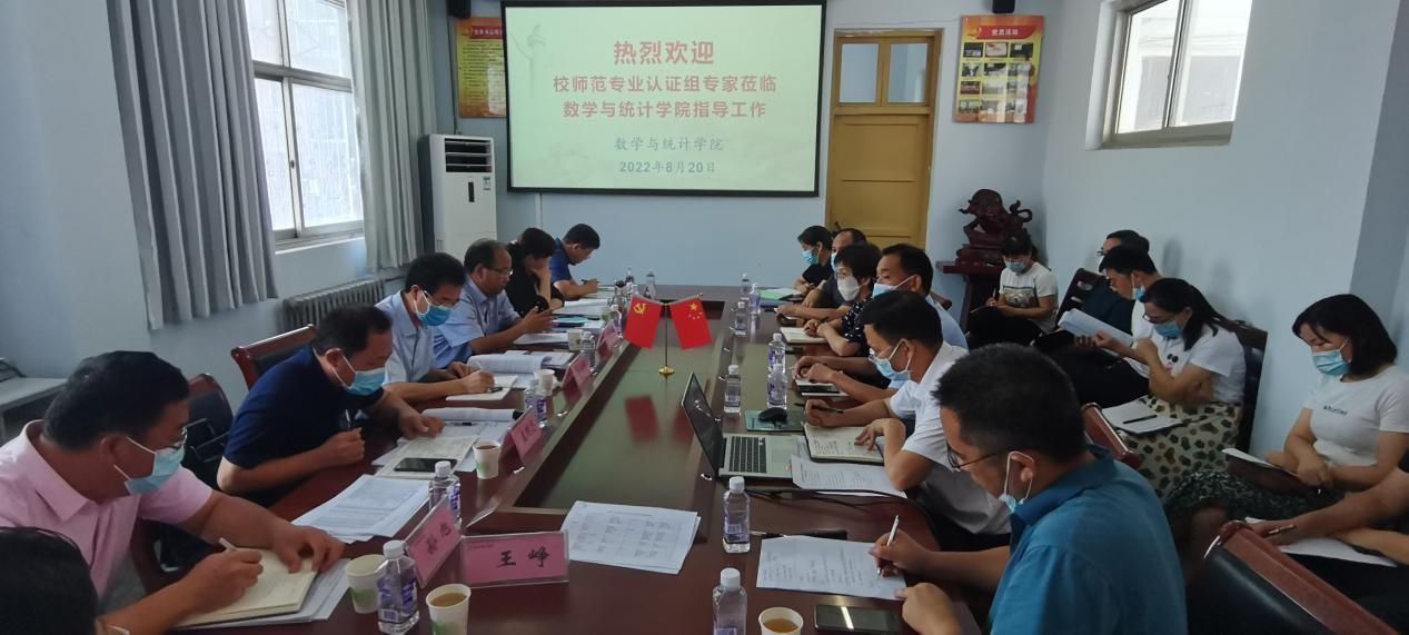 8 月 20-21 日,校长陈向炜、副校长郭文佳、教学评价与教师发展中心主任 孟现志、教务处处长韩桂玲、教师教育学院院长孙旭、生物与食品学院院长周庆峰等一行八人,到数学与统计学院、电子电气工程学院、人文学院,检查指导数学与应用数学、物理学、汉语言文学师范类专业认证工作。