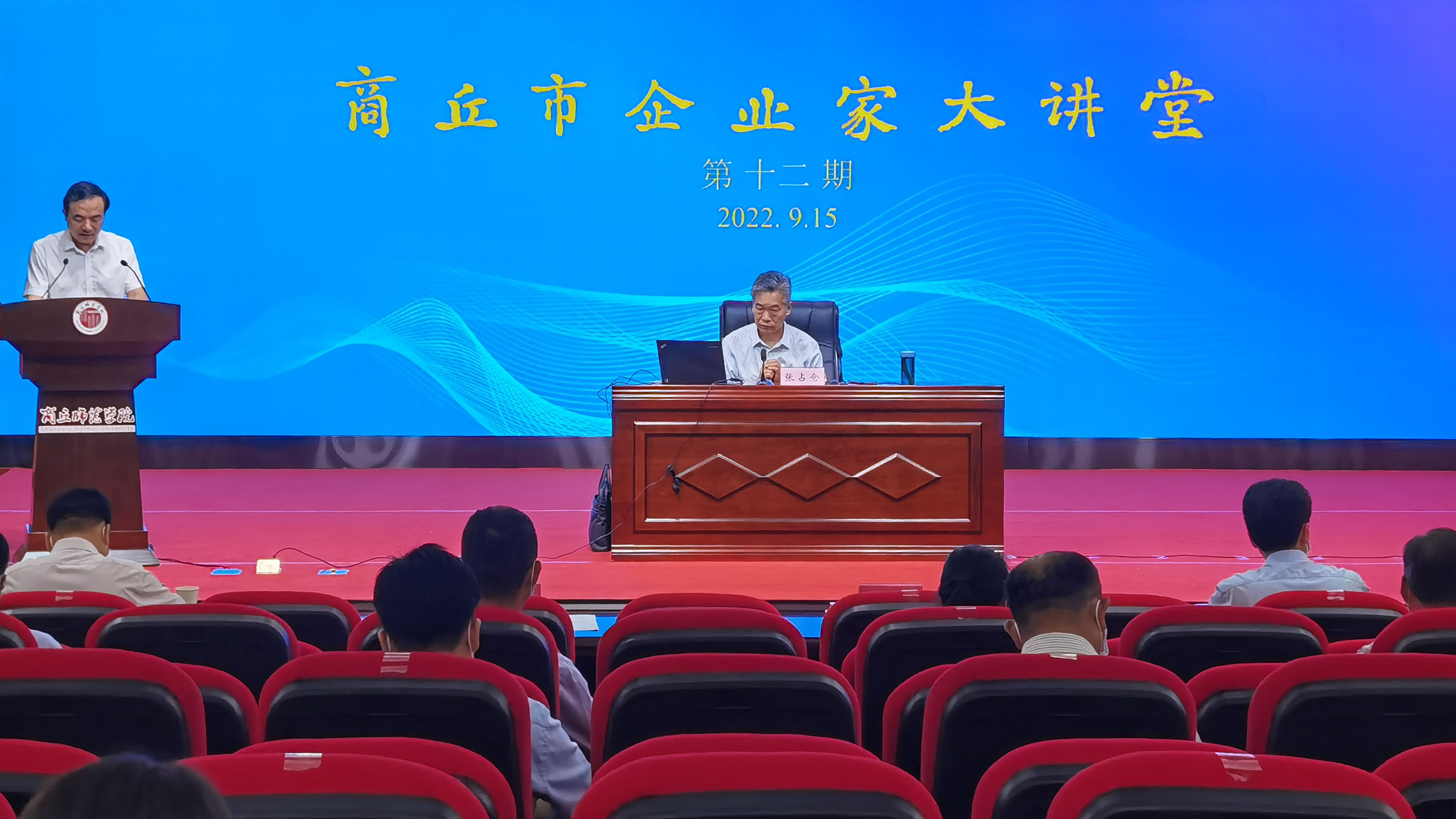9月15日,第十二期企业家大讲堂在玩滚球官网三商楼报告厅举行。商丘市副市长曹月坤,玩滚球官网校长陈向炜、党委副书记吴金山、副校长徐茂田、有关部门负责人及教师代表,市委有关部委、市直有关单位主要负责同志,市行业商会负责人、睢阳区,梁园区和示范区企业家代表等在主会场参加会议,商丘各县(市区)设分会场观看直播视频。会议由曹月坤主持。