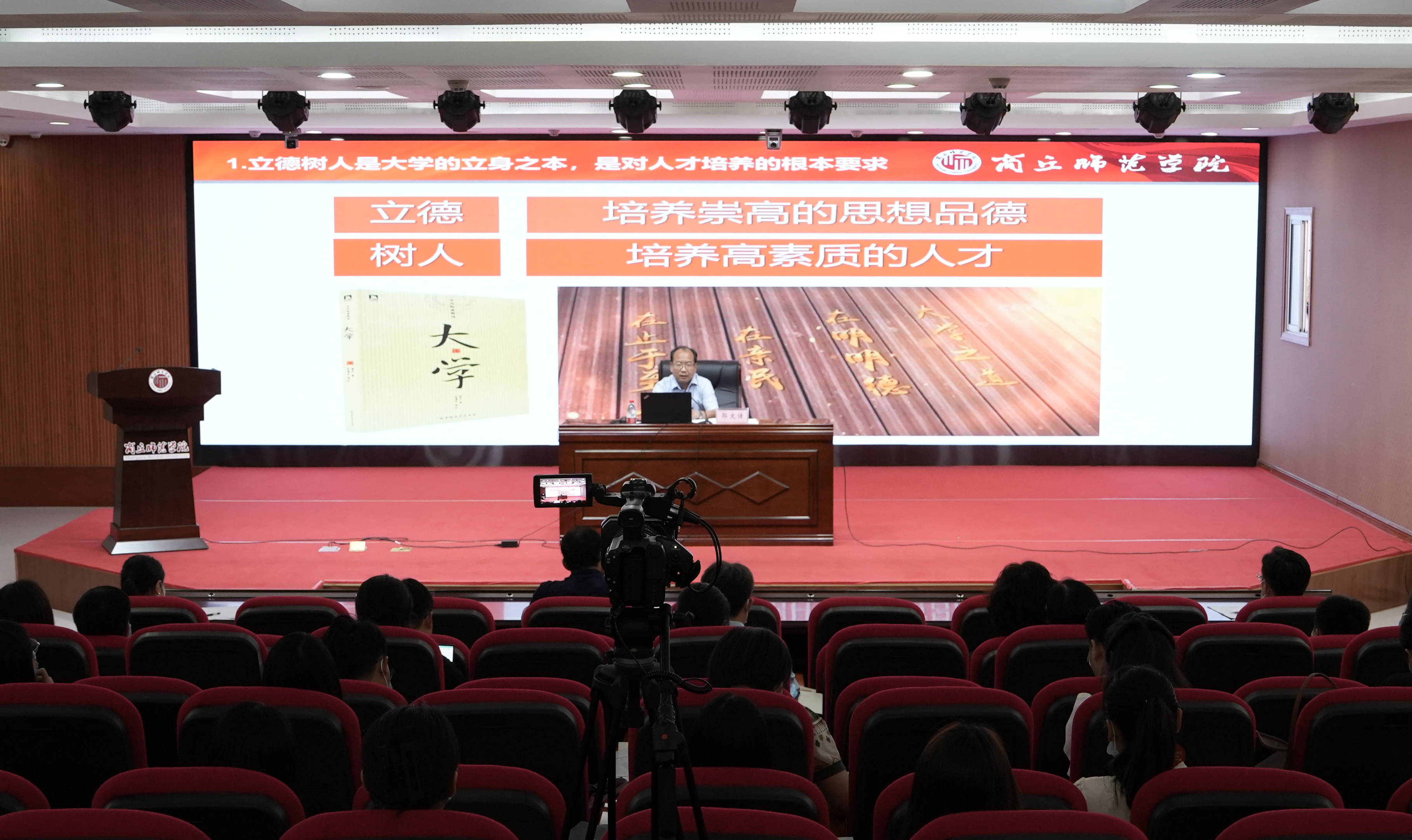 本次培训包括名师论坛、专题报告、师德师风工作坊、课程思政工作坊、智慧教学工作坊、课堂教学工作坊及综合素质工作坊等模块内容。郭文佳以《筑牢立德树人之魂 开启商师教师之旅》为题作了名师论坛,介绍了新时期新形势下筑牢立德树人思想之魂,深化课程思政建设的时代内涵与要求。他强调,高校教师在工作中要主动担当作为,要下大力气做好课程思政,争做新时代党和人民满意的“四有”好老师,为培养德智体美劳全面发展的社会主义建设者和接班人贡献力量。