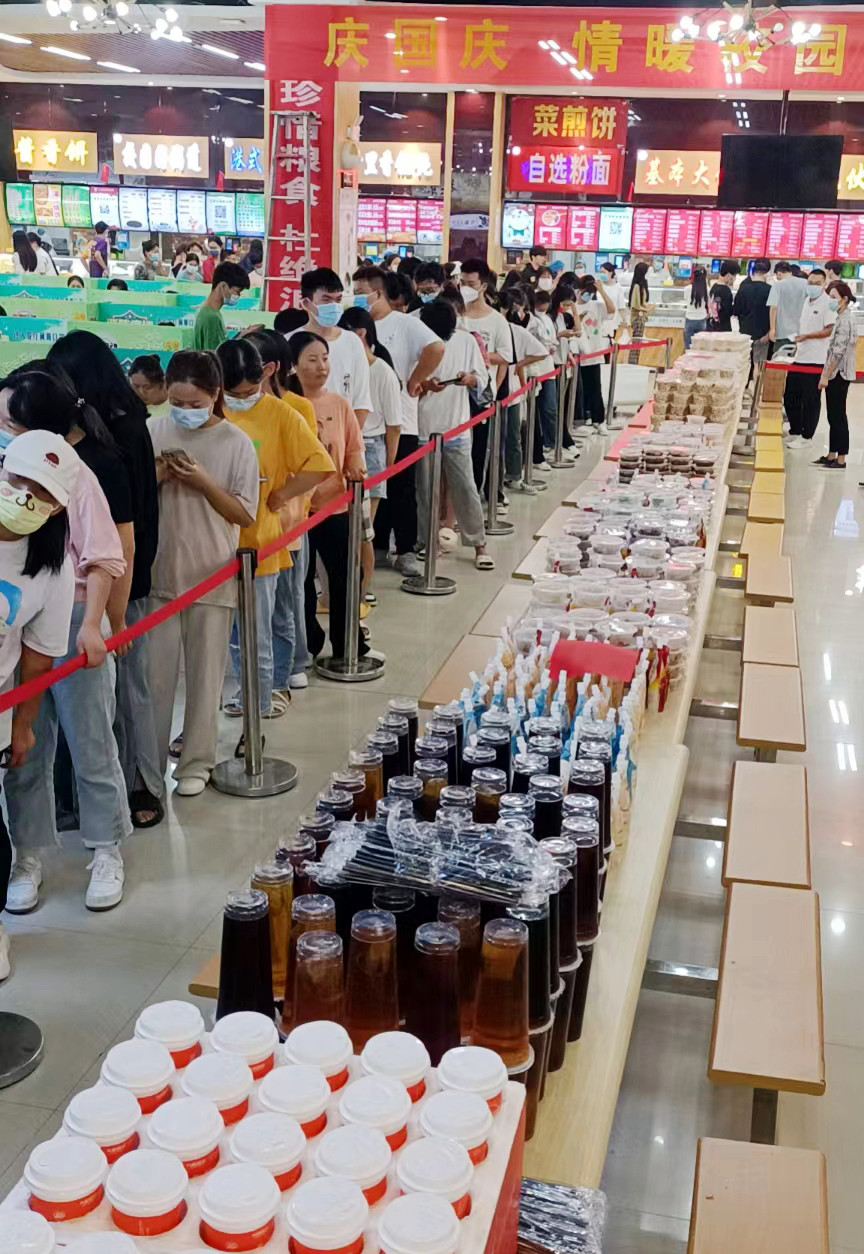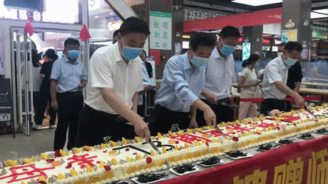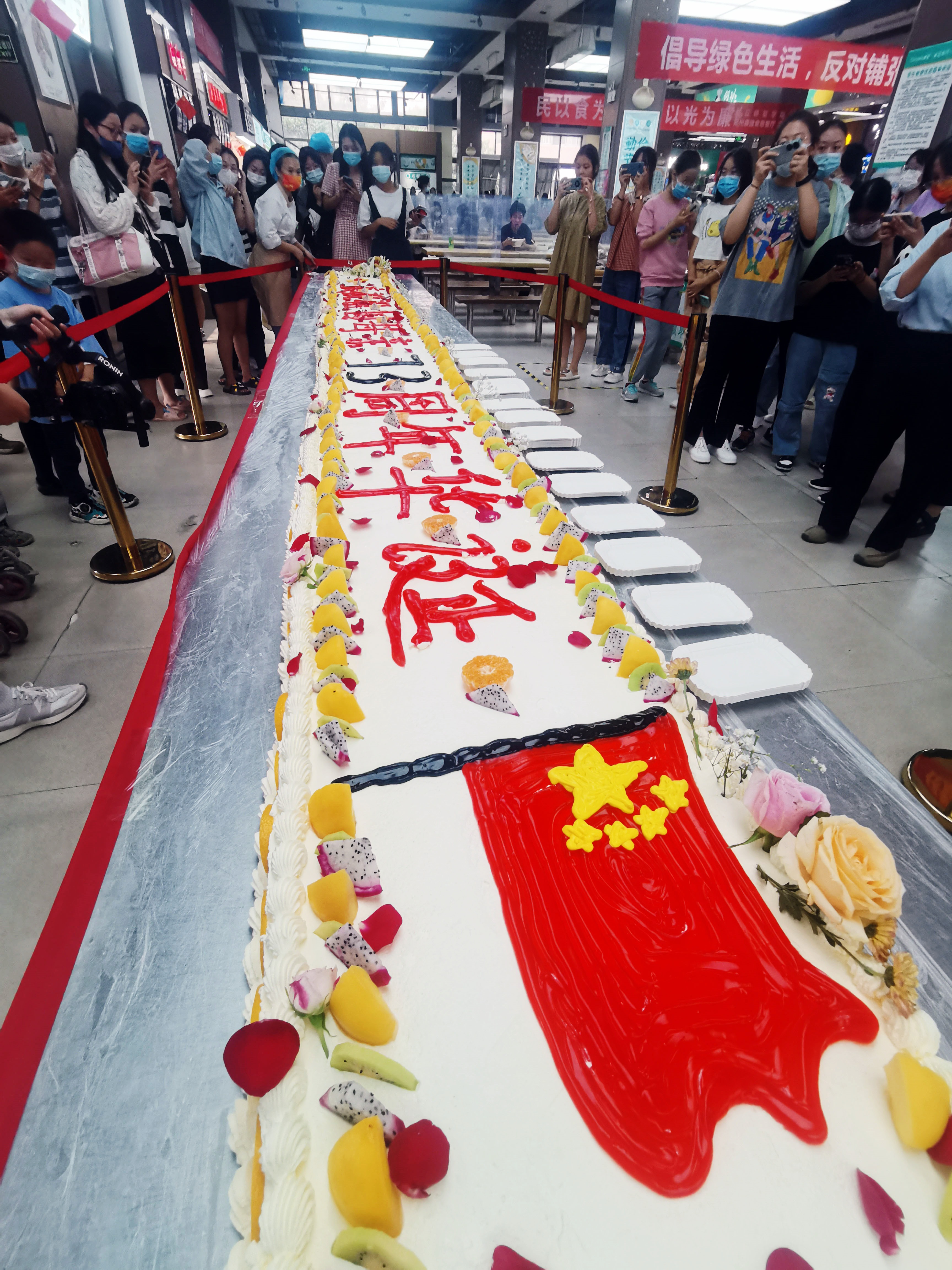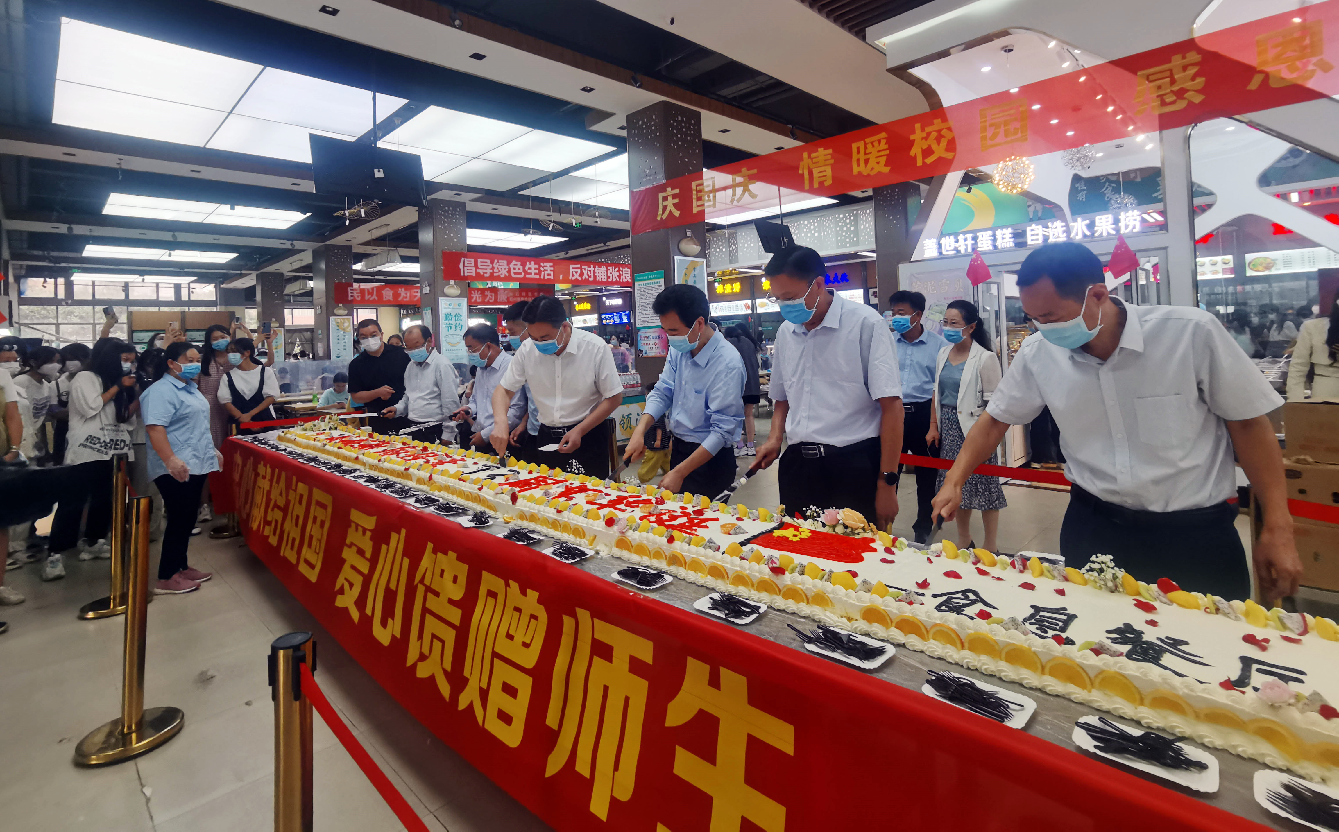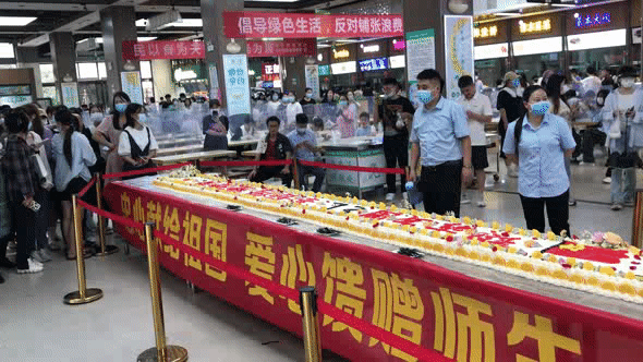 8米长庆国庆蛋糕1个、砂糖馅1000份、西瓜2000斤、爆炸玉米花500份、爆炸大米花500份、麻辣香锅50份、生汆丸子汤50份、菜煎饼100份、酱鸭面50份、水果捞150份、豆浆100份、酸梅汤100份、烤冷面60份、饭团50份、网红烤肠50份、摇滚炒鸡50份、脆皮炸年糕100份、酸奶饮品2700杯、大枣500斤、圣女果300斤、葡萄200斤、巧克力2000个、自制烘焙点心100斤、1000份小面包锅巴、 3000元(1-5元)不等代金券,300张每人单份半价优惠券。