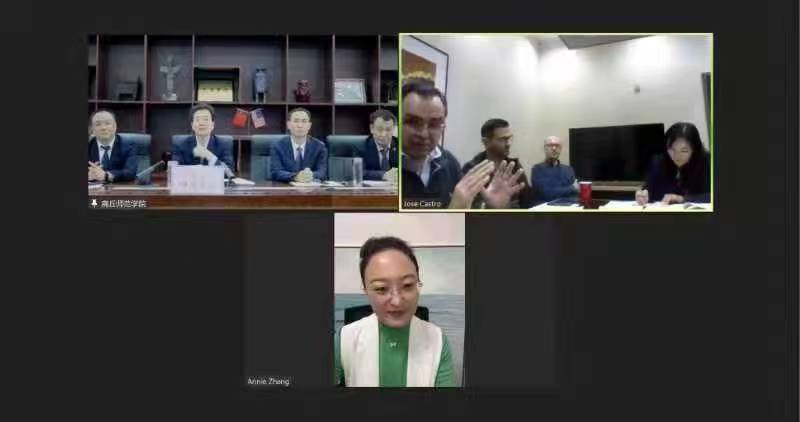 10月3日,玩滚球官网与美国迈阿密国际艺术与设计大学举办中外合作办学机构线上视频交流会,玩滚球官网校长陈向炜、副校长张箭、国际交流处处长闫永峰、副处长梁爽以及艺术设计学院院长朱长征,美国迈阿密国际艺术与设计大学校长莱斯利.鲍曼、国际部主任约瑟.卡斯楚以及艺术学院院长戴安.海.佩特里拉参加了此次视频会议。