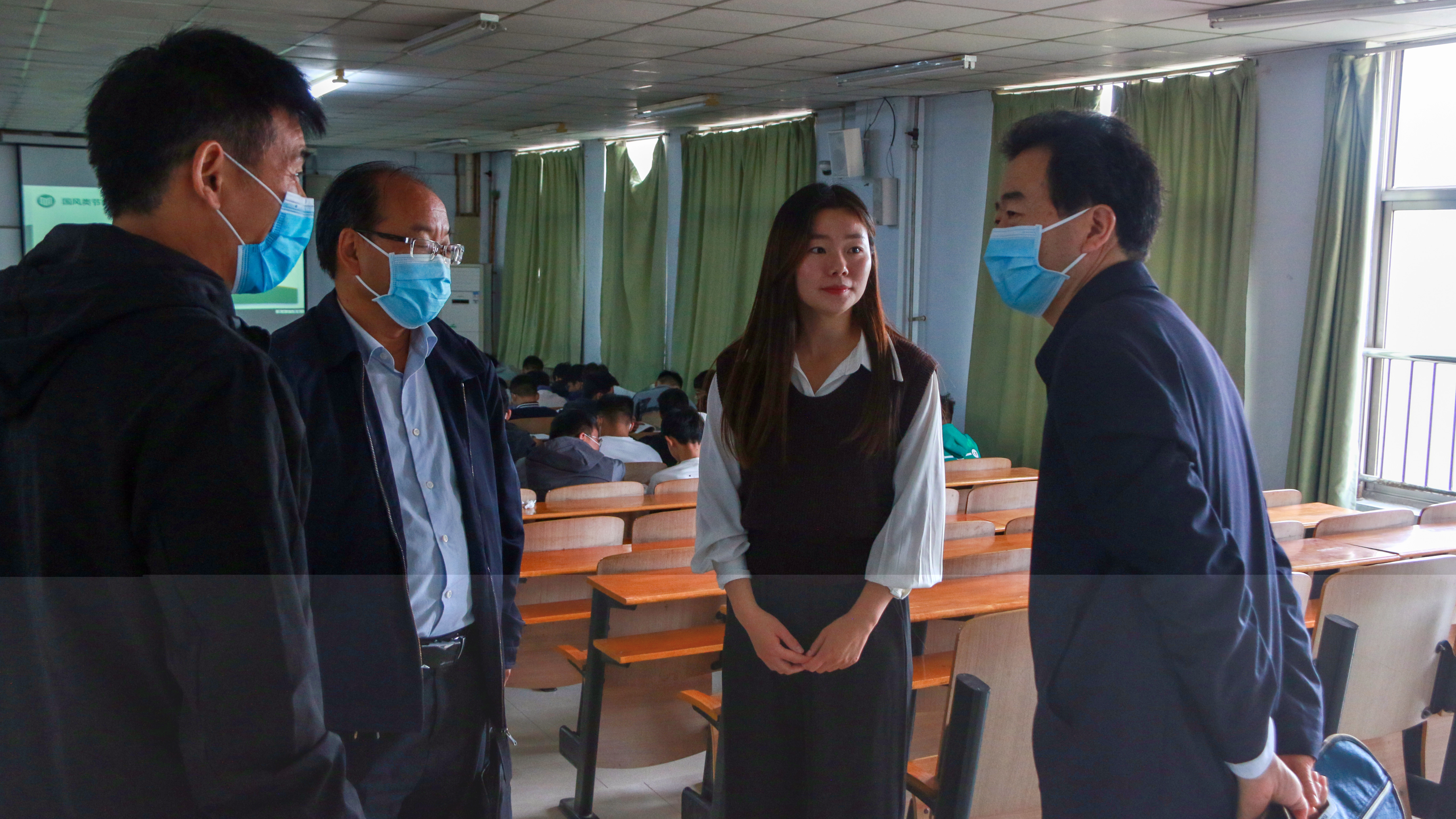 10月8日上午,校领导张志坚、陈向炜、朱伟、吴金山、徐茂田、辛作义、李永春、郭文佳、程功鹏、张箭深入梁园校区智圆楼教学一线,专项听取了马克思主义学院袁蕊老师《马克思主义基本原理》和张扬老师《思想道德与法治》的课堂教学。
