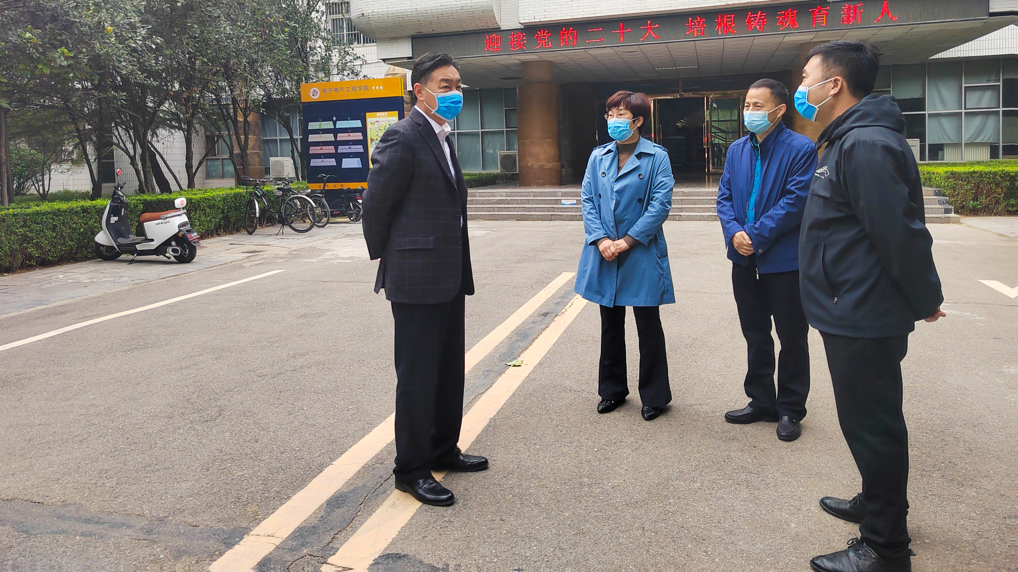 10月14日上午,校党委书记张志坚先后深入睢阳校区校门口、学生宿舍生活区域和各学院走访调研,并亲切慰问值班留守人员。党政办、后勤服务中心等部门负责人陪同调研。