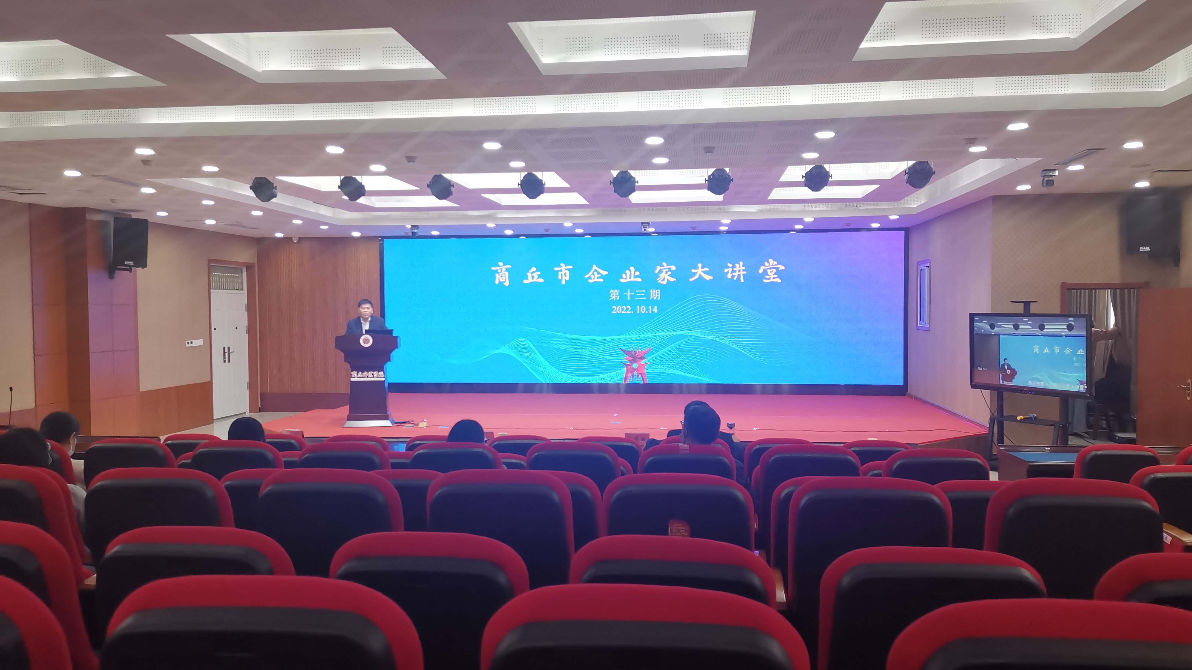 10月14日,第十三期企业家大讲堂在玩滚球官网三商楼报告厅举行。玩滚球官网党委副书记吴金山、副校长徐茂田、有关部门负责人及教师代表在主会场参加会议,商丘市委、市政府有关部委,市直有关单位主要负责同志、商丘各县(市、区)在分会场观看直播视频。会议由吴金山主持。