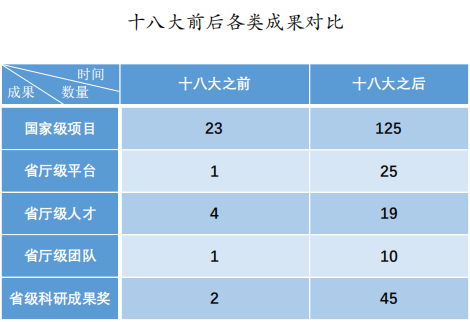 党的十八大以来,学校重视平台的建设,尤其十八大以来,学校在科研平台的搭建上布局谋篇,省厅级平台获批数量从十八大之前的1个增加到现在的25个。“栽下梧桐树,引得凤凰来。”一流的科研平台对一流创新人才发挥了集聚效应。玩滚球官网的省厅级人才项目从十八大之前的4项攀升至现在的19项。通过创新要素的组合和相互作用,产生具有创造力的强“化学反应”,培养形成科技创新团队。玩滚球官网获批的科技创新团队数目从十八大之前的1个跃升至现在的11个。