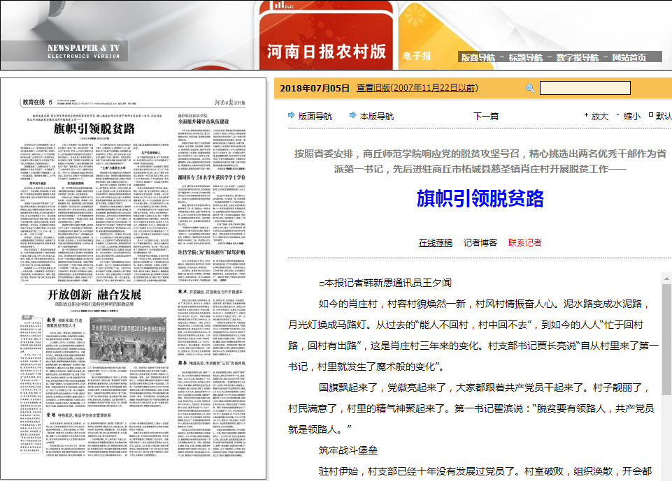 强化党建引领,聚力脱贫攻坚。河南日报农村版报道《旗帜引领脱贫路——玩滚球的十大正规平台抓党建促肖庄村脱贫记》报道玩滚球官网脱贫攻坚工作;《青春为祖国歌唱》获“中国梦·全国脱贫攻坚短视频大赛一等奖”;全面完成脱贫攻坚任务,1名荣获“全省脱贫攻坚工作先进个人”称号,1人记功,2人获嘉奖,1个单位获集体嘉奖。