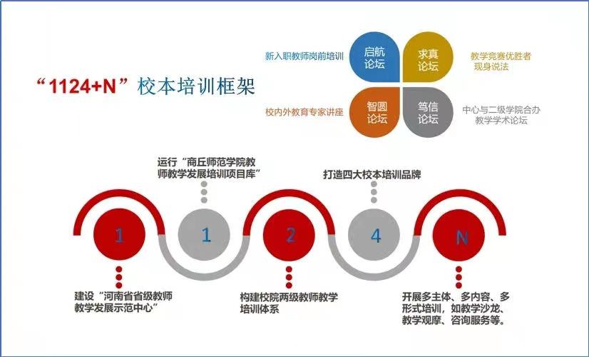强化校本培训,持续构建完善“1124+N校本培训框架”,即:建设好一个中心(教师教学发展示范中心);运行好一个项目库(教师教学发展培训项目库);构建好校院两级培训体系;打造“启航、智圆、求真、笃信”四大校本培训品牌;采取N种培训形式,持续营造“周周有培训,次次有收获”的教师培训工作新格局,助力教师教学发展,服务教师逐梦商师讲坛。精心运营“商师师培”微信公众号,受到兄弟院校同行好评。