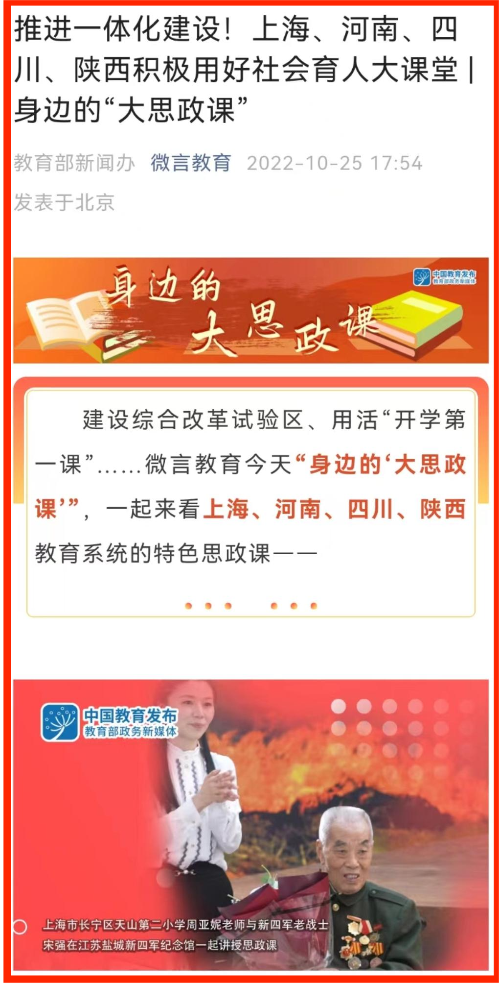 教育部新闻办微信客户端:推进一体化建设!上海、河南、四川、陕西积极用好社会育人大课堂|身边的“大思政课”:https://mp.weixin.qq.com/s/NGEalDThg8ofJ1m3w5Y6Aw