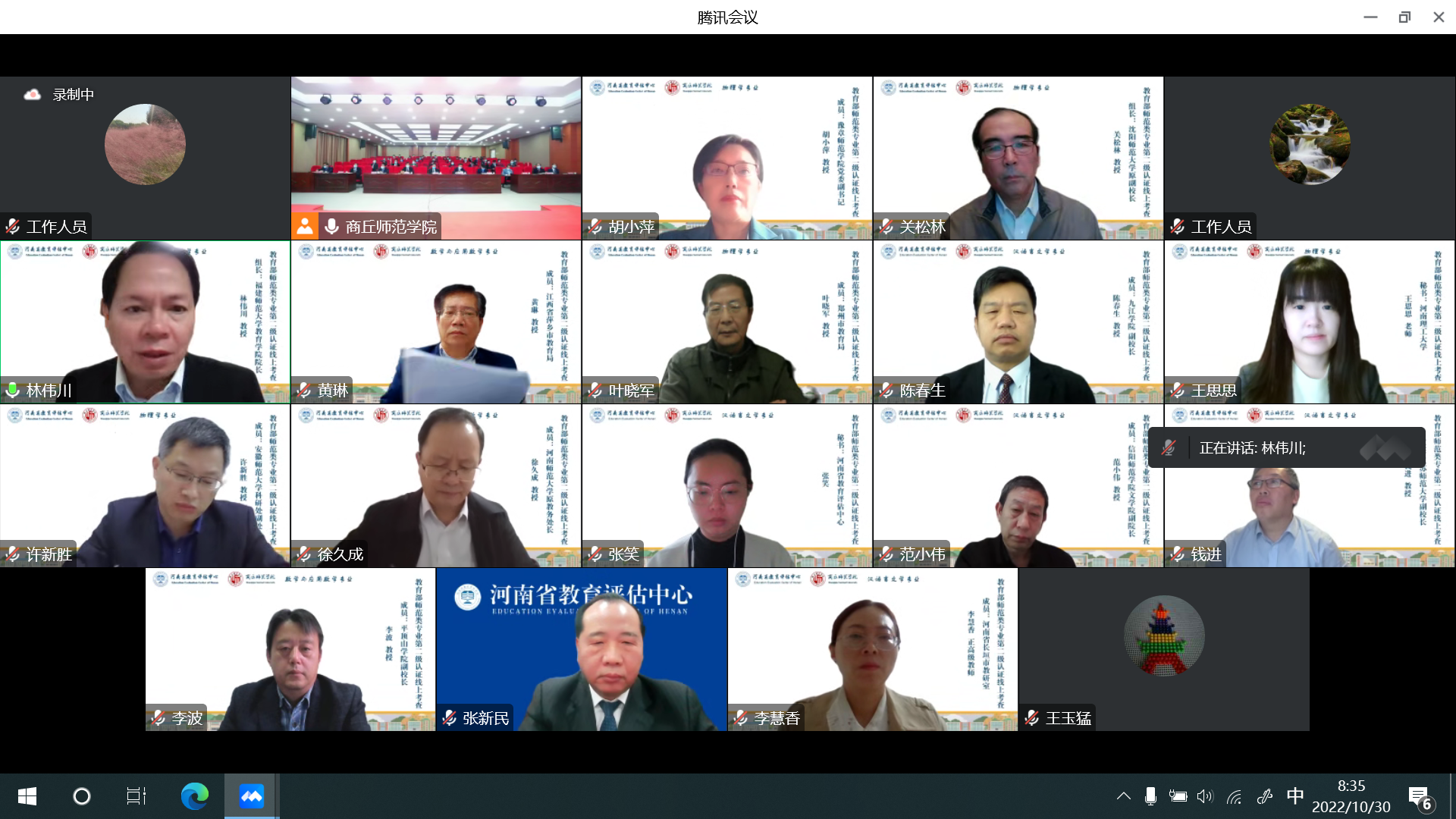 玩滚球的十大正规平台党委副书记、校长陈向炜代表学校做表态发言。10月23日以来,在河南省评估中心指导下,三位专家组组长带领各位专家克服困难、争分夺秒,以在线集中考查方式,对玩滚球官网汉语言文学、数学与应用数学、物理学3个师范专业开展了全方位、深层次的现场考查。这是对玩滚球官网师范类专业教学工作的一次很好的检验和促进,也是对玩滚球官网事业发展的帮助和支持。各位专家认真负责、严谨务实,表现出来的不仅有办好师范专业的丰富经验和开阔视野,推进专业内涵建设、深化教师教育改革的真知灼见,还有忘我工作的敬业精神、一丝不苟的工作作风,更有与人为善、包容大器、坦诚朴素的高贵品格。各位专家对玩滚球官网汉语言文学、数学与应用数学、物理学3个师范专业的考查意见,全面深刻、客观公正、针对性强、指导性强、引领性强。