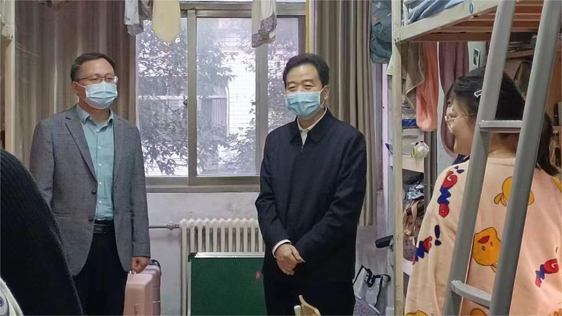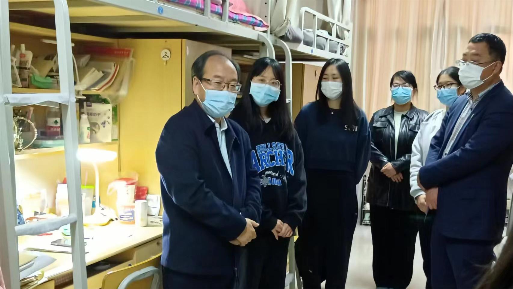 校长陈向炜在与师生交谈时,对全体党员干部、师生员工同心同德、共同抗击疫情,表示最衷心感谢!陈校长指出,各级领导干部、师生员工,要充分认清当前疫情防控工作面临的严峻挑战,牢固树立底线思维,时刻把广大师生员工的生命安全放在第一位,统筹抓好疫情防控和教学、科研、安全等各项工作。他希望,同学们适量运动、规律作息,做好自我防护、自我管理、自我学习,守好个人防护关,不负时代、不负韶华,创造属于自己的精彩大学生涯。