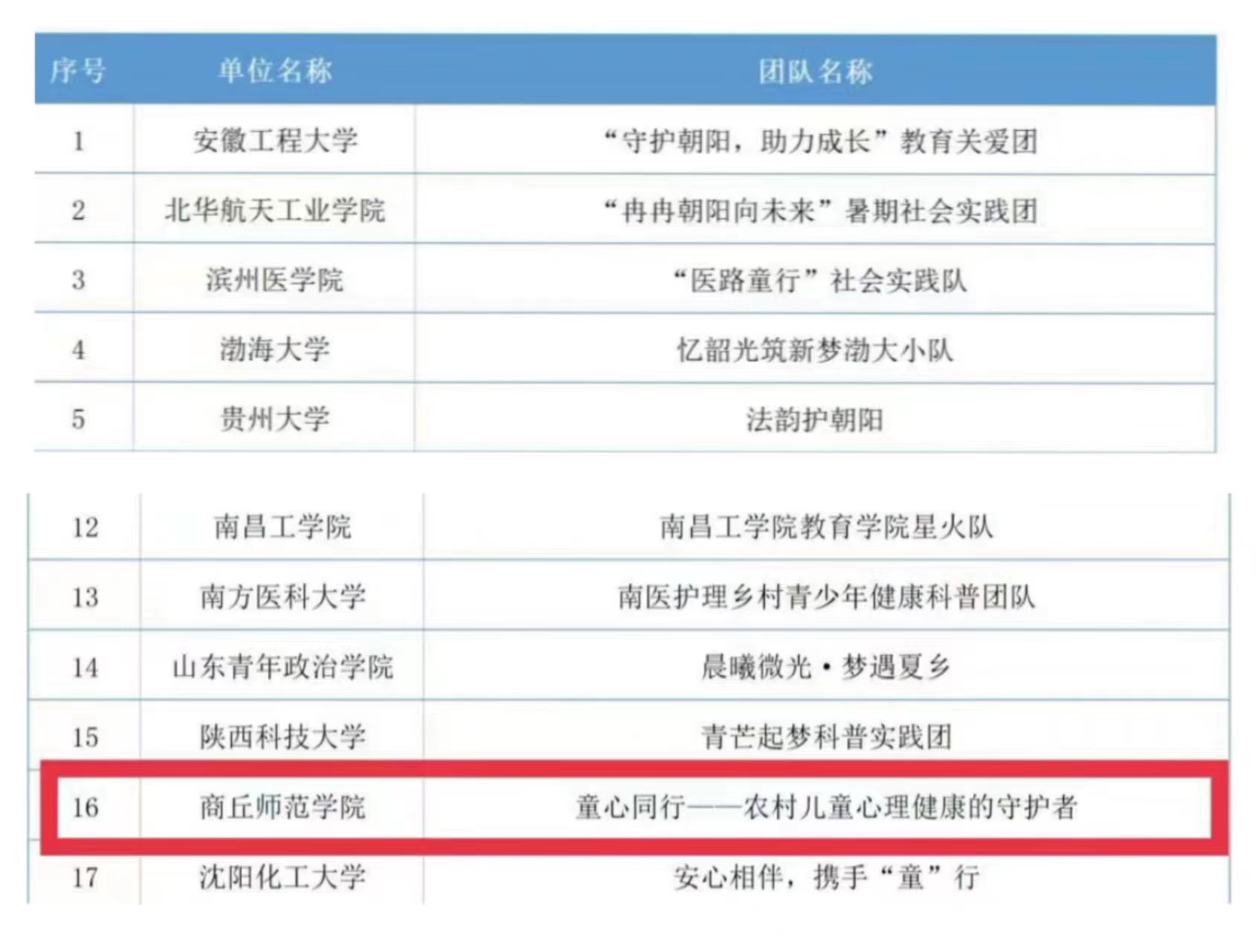 近日,中社联青学委发布“守护朝阳 助力成长”暑期“三下乡”社会实践专项活动优秀实践团队名单。教师教育学院“童心同行”志愿团队入选25支优秀实践团队。