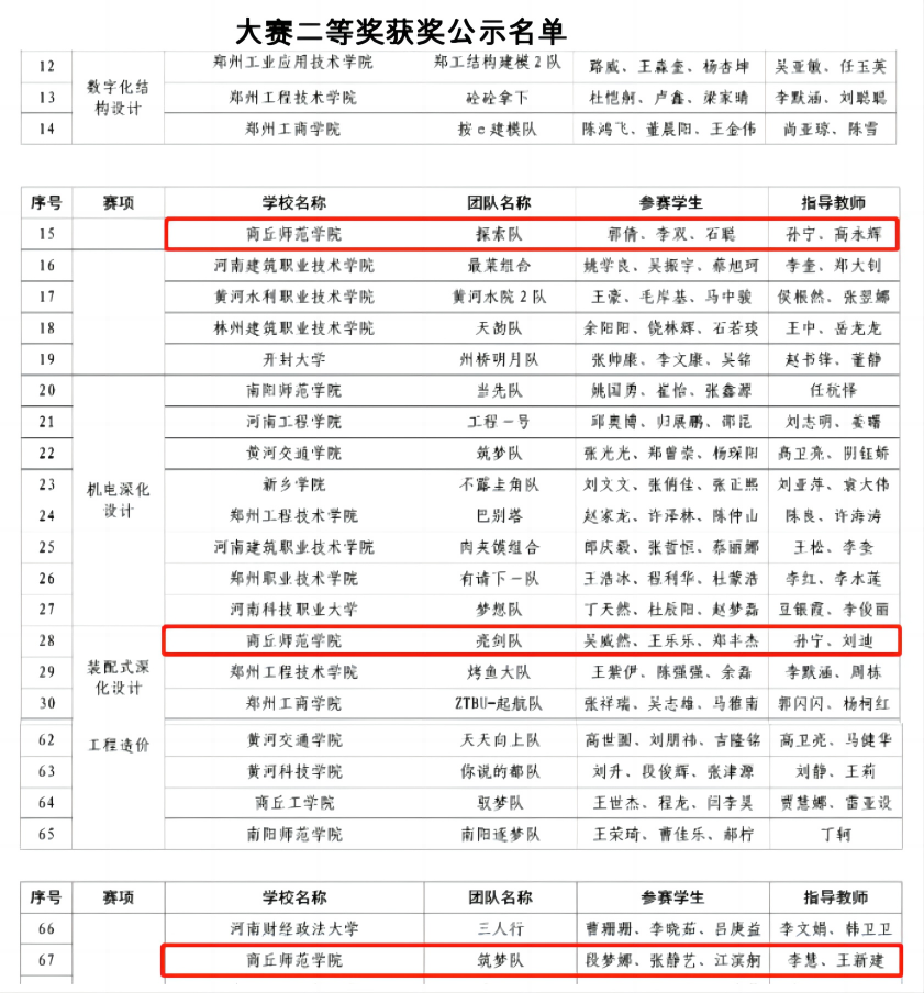 2022“建美中原”河南省大学生建筑设计大赛既锻炼了学生的专业实践能力以及团队合作能力,又真正实现了将专业知识与实践应用相结合的实训目的,提升了专业内涵,培养了一批具有创新精神和创造能力的优秀青年学生。这也是建筑工程学院“教师+学生+实训+竞赛”人才培养模式的具体体现,实现了教师和学生专业技能双向提升。展望未来,建筑工程学院学子定不负众望,再创佳绩!