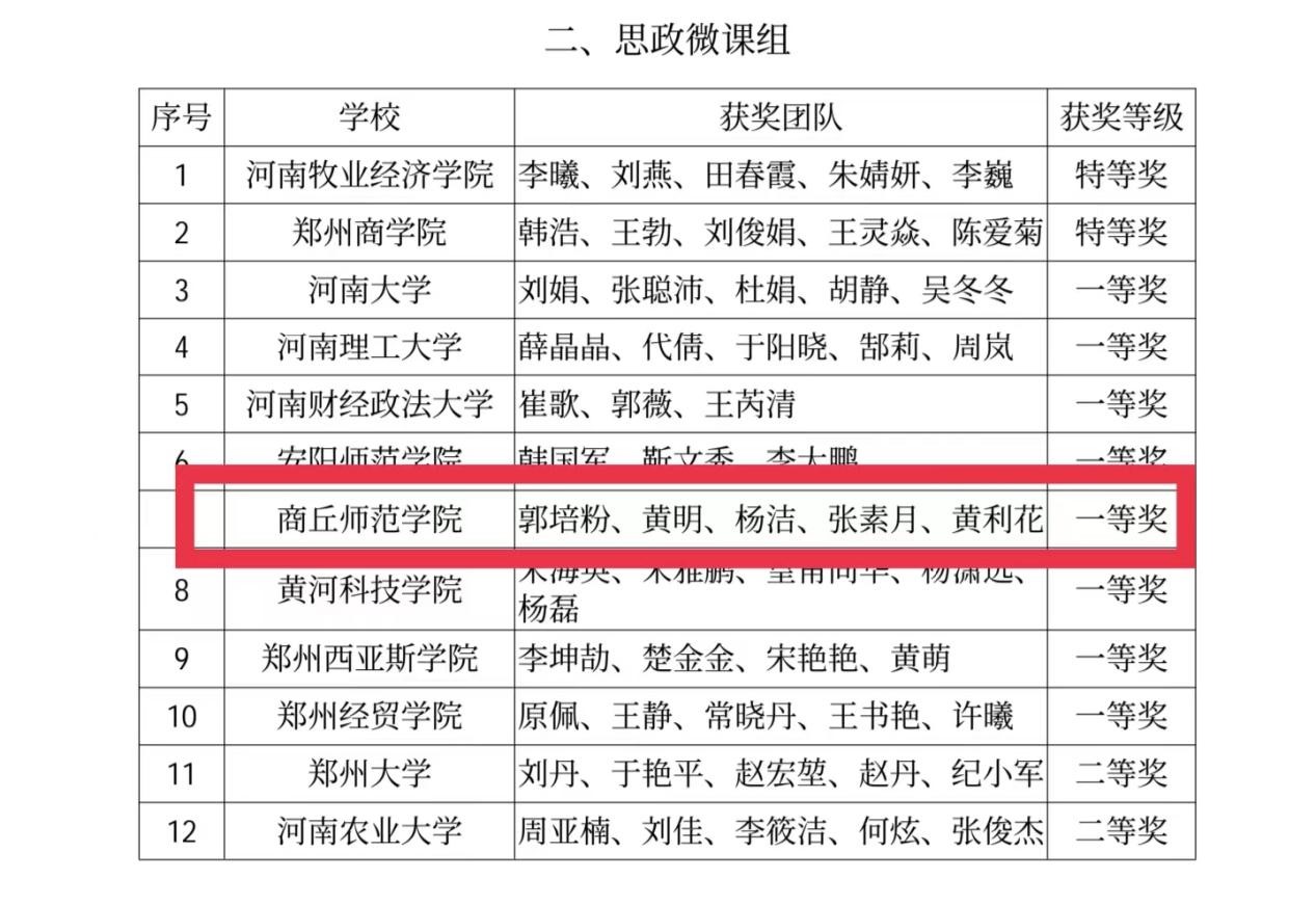 外语学院精心组建教师团队参赛,经过周密部署、层层选拔和反复磨课,经过学校初赛、省级复赛和决赛三个阶段,最后“思政微课组”的郭培粉、黄明、杨洁、张素月、黄利花教师团队荣获一等奖,“跨文化组”由李梦凡、王小涛老师带队的杨若琳、孙雯、吴啟伦学生团队荣获二等奖。据悉,外语学院已连续两年在微课组大赛中取得一等奖,并在跨文化组的比赛中取得新的突破。