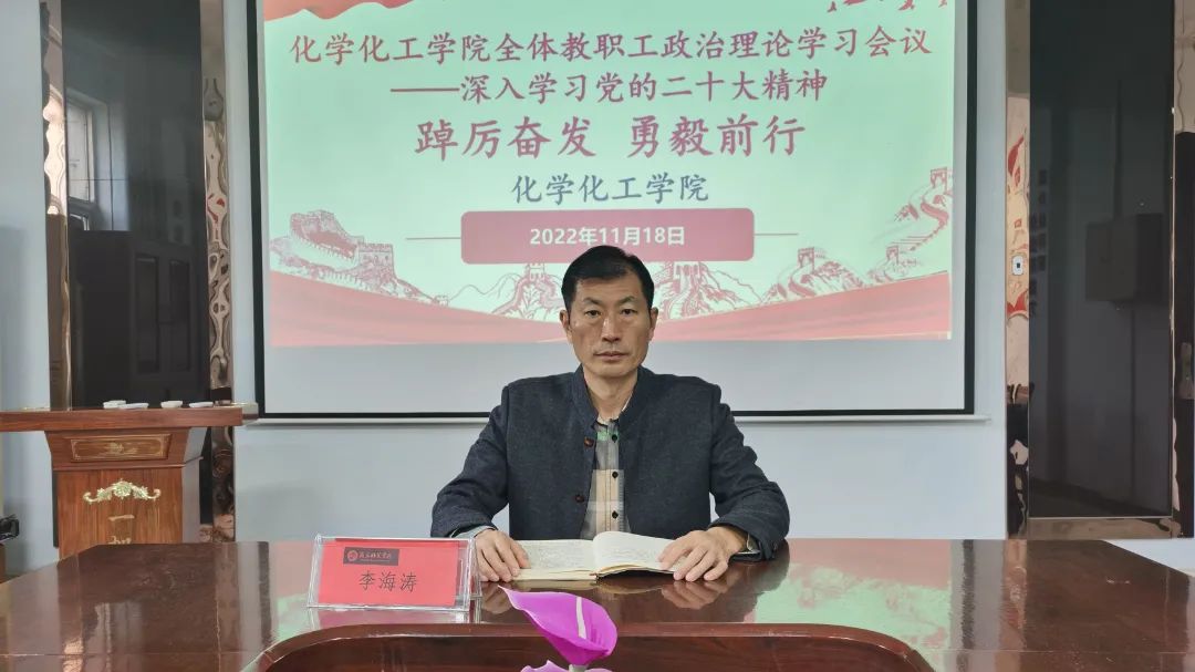 当前和今后一个时期全党全国的首要政治任务,就是认真学习宣传贯彻党的二十大精神,把党的二十大精神贯彻落实到党和国家工作各方面全过程。党的二十大闭幕后,化学化工学院组织师生以教研室、党支部、团支部、班级、学生会、学生社团、宿舍等为单位,通过师生政治理论学习、中心组理论学习、主题党团日活动、党团课、主题班会、团学干部例会等形式,对党的二十大精神开展集体学习、集中研讨、交流讨论;利用学院新媒体平台推送《党的二十大报告全文》、《中国共产党章程》、《红旗渠精神的由来与发展》、《习近平:红旗渠精神永在!》等链接安排学习内容,同时举办党的二十大报告内容答题竞赛活动等,深入推动学习党的二十大精神活动走深走实。党的二十大是在全党全国各族人民迈上全面建设社会主义现代化国家新征程、向第二个百年奋斗目标进军的关键时刻召开的一次十分重要的大会。聚焦党的二十大提出的新思想、新观点、新论断,全体师生通过深入学习交流,更加深切感受到,十年来党的政治领导力、思想引领力、群众组织力、社会感召力显著增强,在党的历史进程和国家事业发展中,始终是中国人民和中华民族最可靠的主心骨。通过认真学习宣传贯彻党的二十大精神,师生对党的二十大的重大意义有了更加深刻的认识,责任感、使命感进一步增强,奉献精神和担当意识进一步提升。纷纷表示要不断坚定理想信念、提升理论素养、加强实践锤炼、严格自我约束、积极努力工作,把知责、履责、尽责、担责贯穿工作全过程,踔厉奋发、勇毅前行,不断提高政治判断力、政治领悟力、政治执行力,不负党、不负国家、不负人民,把力量凝聚到党的二十大确定的各项任务上来。党的二十大报告立意高远、内涵丰富、令人鼓舞、催人奋进,是全党意志、人民心声的生动展示,更是全面推进中华民族伟大复兴的行动指南。作为学院党委书记,将以高度的政治责任感和饱满的学习热情,认真学习贯彻党的二十大精神,把思想和行动统一到党的二十大精神上来,争取思想更上新高度,工作更上新台阶,以更昂扬的斗志、更饱满的热情、更充足的干劲投身为党育人、为国育才的伟大实践,全面推进学院党建工作强基引领,聚焦学院教育教学、科学研究、申硕工程、专业认证、国家基金项目申报、抗击疫情等主责主业,带领学院班子和全体教职工勇于创新、勇挑重任、砥砺前行,聚焦学院发展过程中的瓶颈问题和障碍,创新方式方法、拓宽发展思路、一一重点突破,真正把党的二十大精神融入到思想中、落实到行动上,明确努力方向,从具体事情做起,艰苦奋斗、真抓实干,推动各项工作不断实现新突破、取得新成效,以实际行动推进学院事业更上新高度。