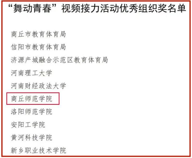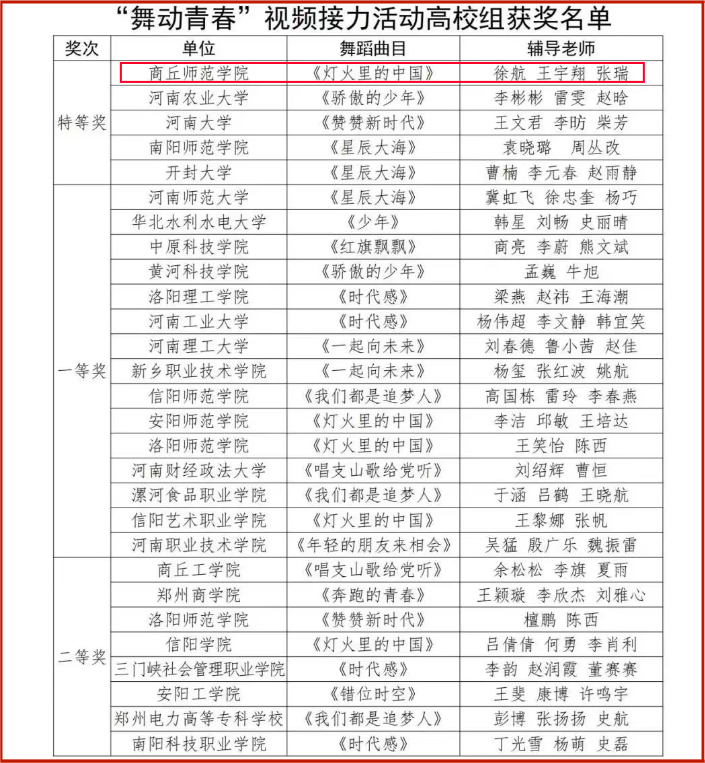近日,河南省委教育工委、河南省教育厅下发《中共河南省委教育工委办公室河南省教育厅办公室关于公布“舞动青春”视频接力活动获奖结果的通知》,玩滚球官网报送作品《灯火里的中国》获评“舞动青春”视频接力活动高校组特等奖,玩滚球官网荣获“舞动青春”视频接力活动优秀组织奖。