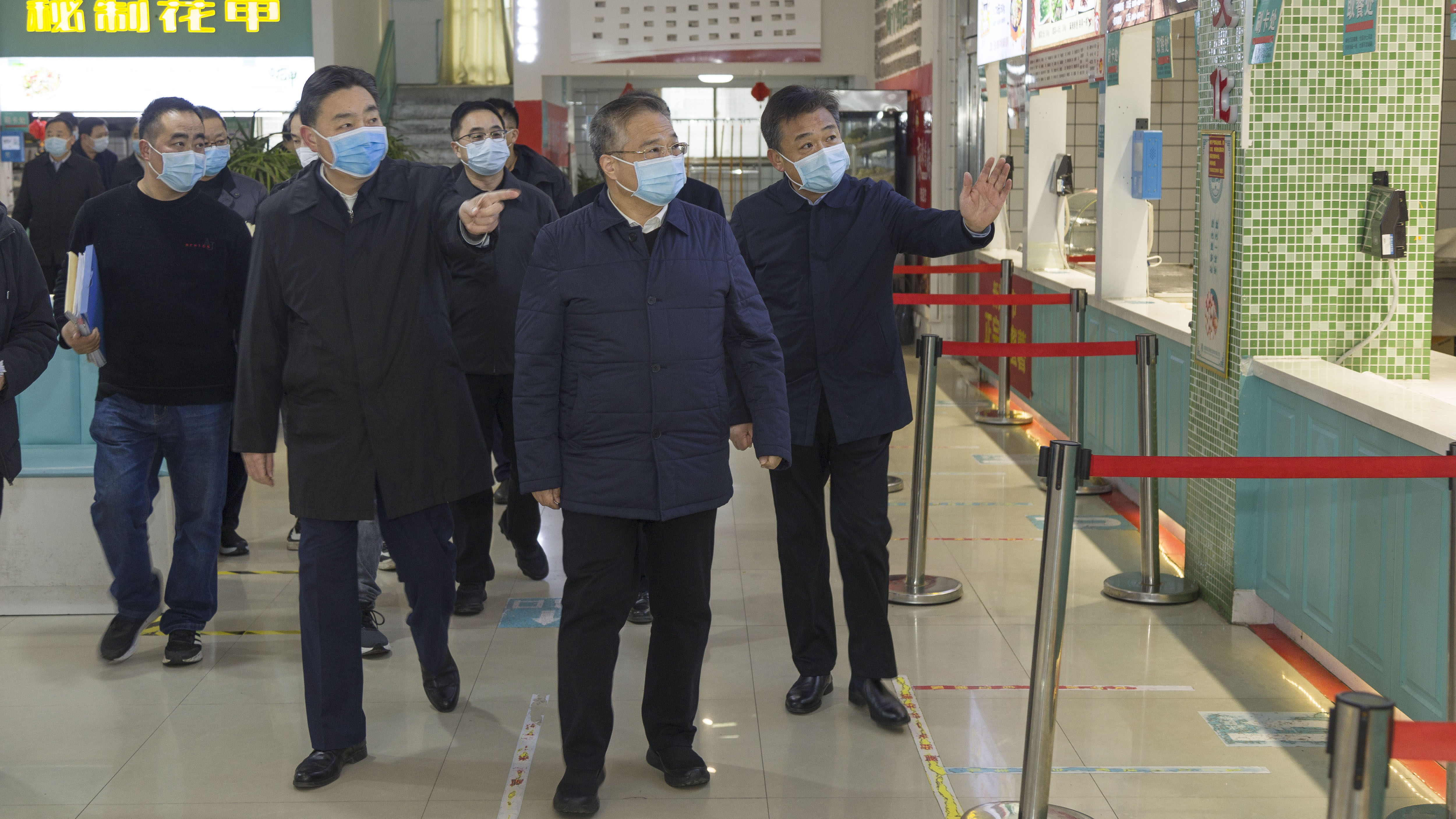 12月1日,商丘市委书记李国胜到玩滚球官网梁园校区调研校园食品安全工作。校党委书记张志坚、校长陈向炜,商丘市领导王金启、梁万涛、岳爱云,副校长郭文佳,商丘市教体局、卫健委、市场监管局,校后勤服务中心等部门负责同志陪同调研。
