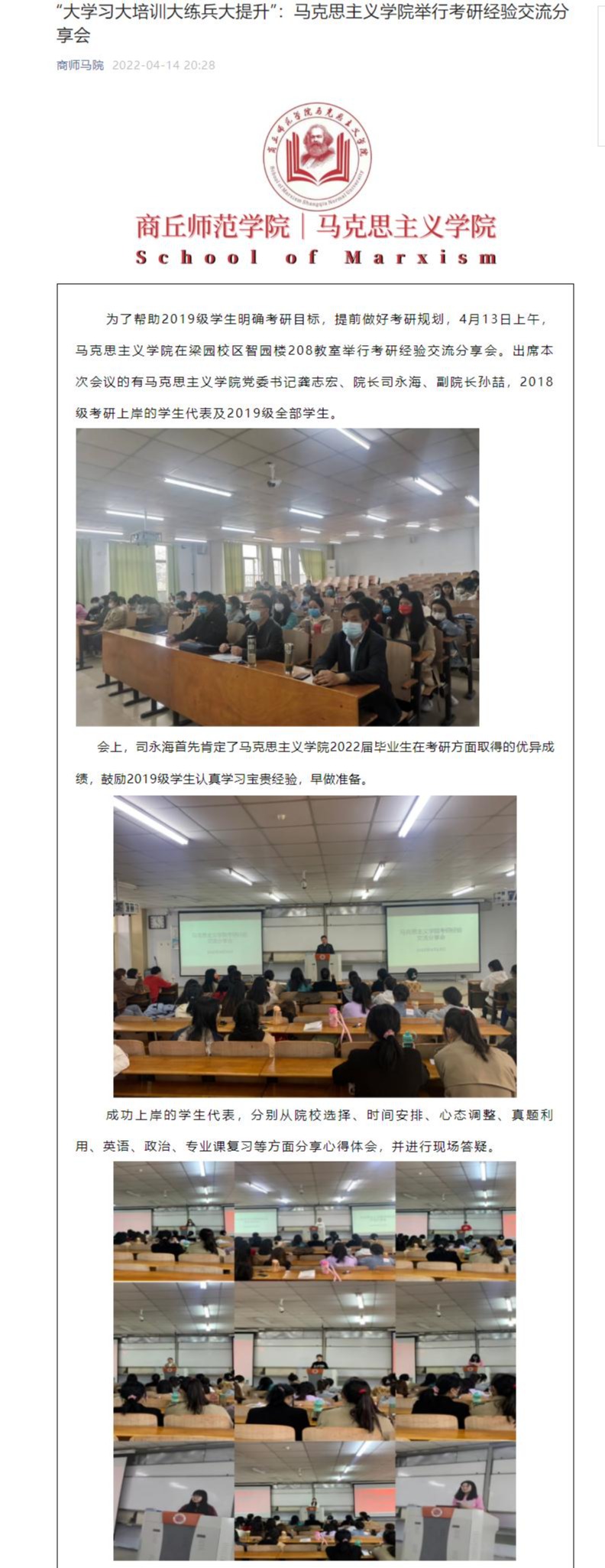 2022届毕业生就业工作启动后,学院立即成立2022届毕业生就业工作领导组,把毕业生就业工作作为一项紧迫的政治任务来抓,主动作为、研判形势、破解难题,先后召开2次专题会议,2次毕业生就业座谈会,走访周边中小学校了解思政课教师岗位缺编情况4次,精准推荐毕业生就业。组建领导带头、全员参与的就业工作队,构建完善纵向到底、横向到边、精准到人的就业服务工作网络,形成了全员抓就业、促就业的工作格局。健全就业工作推进与反馈机制,压实工作责任,院领导班子每2周召开一次就业工作例会,听取推进情况和加强工作交流,确保就业大局稳定、工作推进有序有力。加强就业辅导员、班主任团队建设,强化线上就业指导业务培训,先后2次学习研讨河南省大学生就业创业服务指南,组织就业指导教师积极申报全省大中专院校就业创业课题研究2项,不断提升就业工作队伍工作水平。构建以毕业生就业率和就业质量为重点考核指标,分解细化就业工作目标责任,建立完善就业导师制、毕业班辅导员联络机制,制订就业工作台账,实行就业销号管理等,强化目标考核和过程管理,增强就业工作主动性。