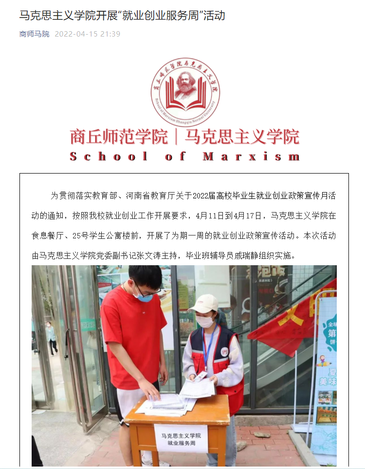 一是拓宽就业渠道。积极开展“书记校长访企拓岗促就业”专项行动,根据思政教育专业实际情况,找准发力点,高效推动院校交流合作,创造更多就业选择和机会,先后联系走访了民权一高、实验中学等,签订毕业生就业实习实训基地协议,同时广泛联络校友和社会各界资源,利用到中小学校教学实践基地实习机会,积极向其推介毕业生留校,通过联系交流,在4月份,2名学生被汝南一高、汝南双语学校招聘入编。二是推送就业信息。校就业指导中心推送的招聘信息和校园招聘会活动信息第一时间推送毕业生,同时注重把搜集招聘信息与毕业生就业意向结合起来,精准对接就业信息,提高学生就业效率。三是解决就业难题。主动化解因疫情影响学生慢就业、怕创业等急难愁盼问题,通过微信、公众号等答疑解惑学生离校面试、研究生考试、招教考试问题。建设了高标准“网络面试间”,服务2022届毕业生21人次,尽最大努力为毕业生提供生活学习方便,做到疫情隔不断、就业常在线。主动服务研究生面试事迹被“豫教思语”宣传推广。