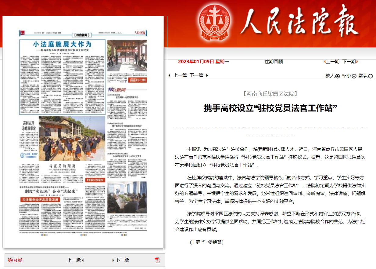为加强法院与院校合作,培养新时代法律人才,近日,河南省商丘市梁园区人民法院在玩滚球的十大正规平台法学院举行“驻校党员法官工作站”挂牌仪式。据悉,这是梁园区法院首次在大学校园设立“驻校党员法官工作站”。