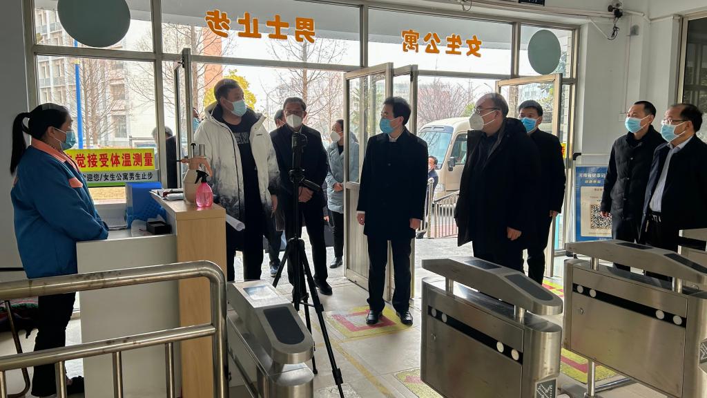 2月7日下午,河南省教育厅二级巡视员、学位管理与研究生处处长曹克舜,副处长周朝霞和商丘市教体局负责同志一行来校调研开学准备和校园安全工作,校领导陈向炜、吴金山、郭文佳、张箭及学校有关单位负责同志陪同检查。