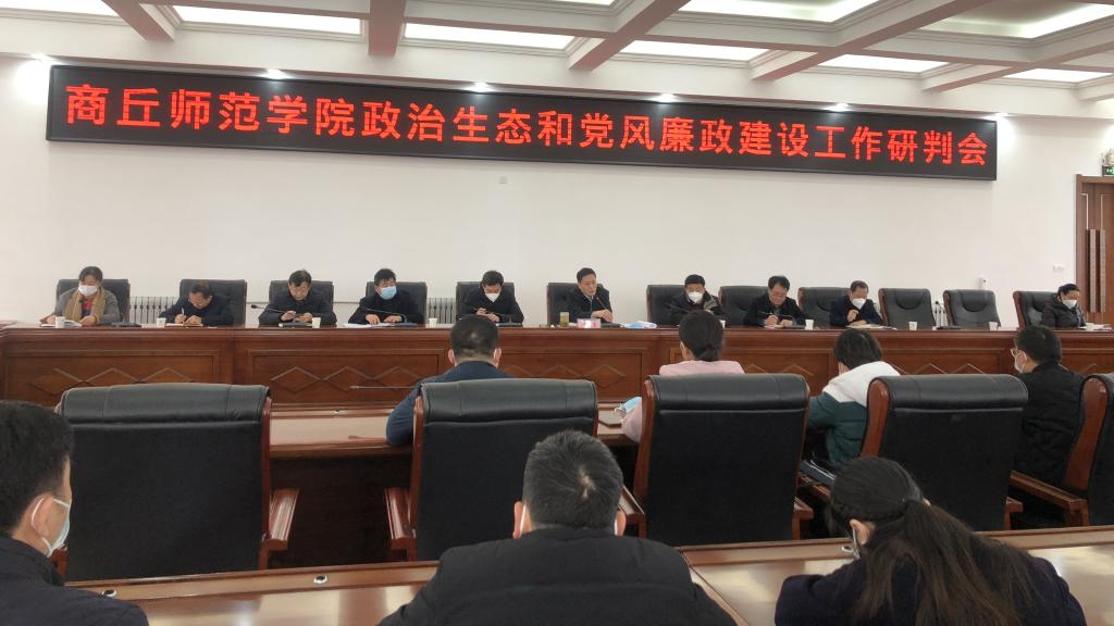 2月11日,玩滚球官网在梁园校区归德楼召开政治生态和党风廉政建设工作专题研判会,深入分析研判学校政治生态和党风廉政建设工作情况,研究部署积极营造良好政治生态和加强党风廉政建设工作的具体举措。会议由校纪委书记、监察专员李永春主持。