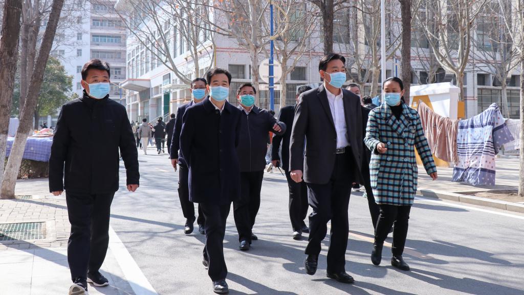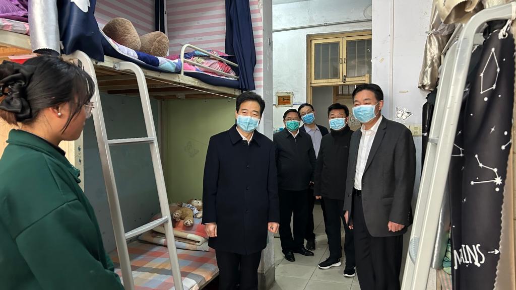 2月19日上午,校党委书记张志坚、校长陈向炜在梁园校区通过实地检查、师生交流等方式,查看学生返校工作。相关职能部门负责人陪同检查。