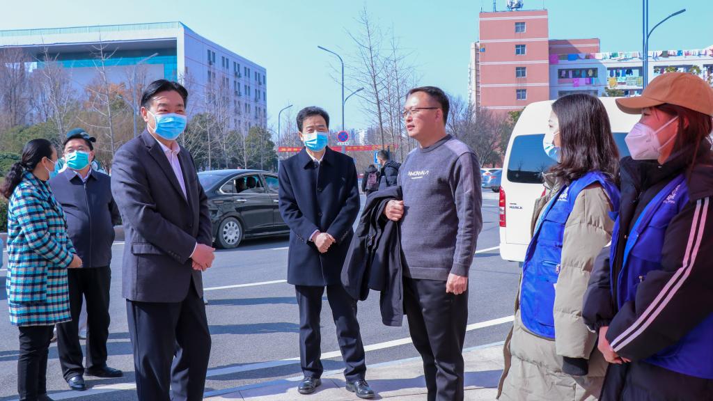 走访调研过程中,校领导一行人先后来到校门口、志愿服务点、校医院、食堂超市、学生宿舍等地,各相关职能部门负责人就春季学期的学生返校、校园管理、后勤服务等方面进行了汇报。