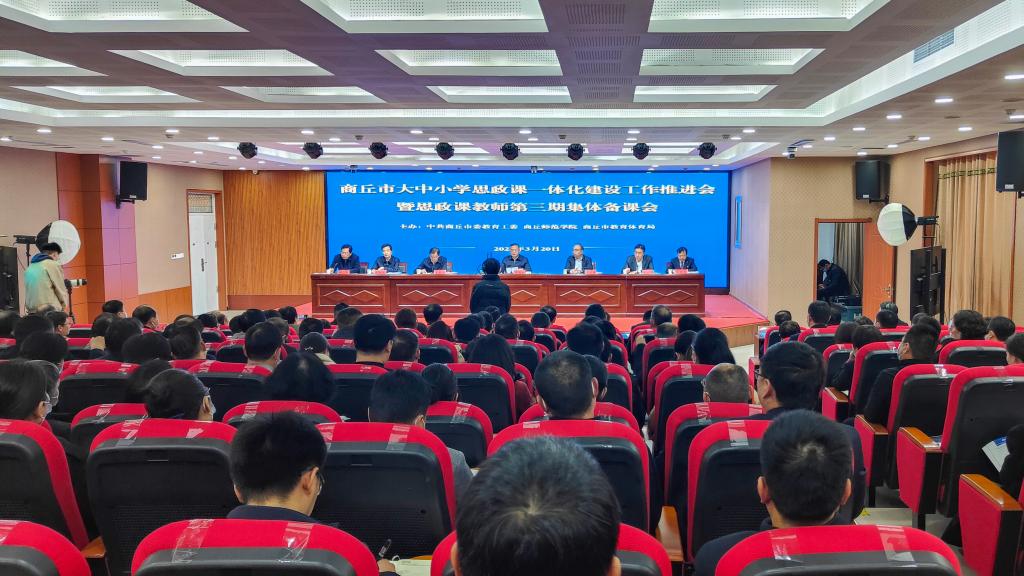 3月20日-21日,由中共商丘市委教育工作委员会、玩滚球的十大正规平台、商丘市教育体育局联合举办的全市大中小学思政课一体化建设工作推进会暨思政课教师第三期集体备课会在玩滚球官网举行。市委书记李国胜,省教育厅二级巡视员曹克舜出席会议并讲话。市委常委、宣传部长王全周,玩滚球官网党委书记张志坚,校长陈向炜,商丘职业技术学院校长薛明志,玩滚球官网党委副书记、工会主席朱伟出席。