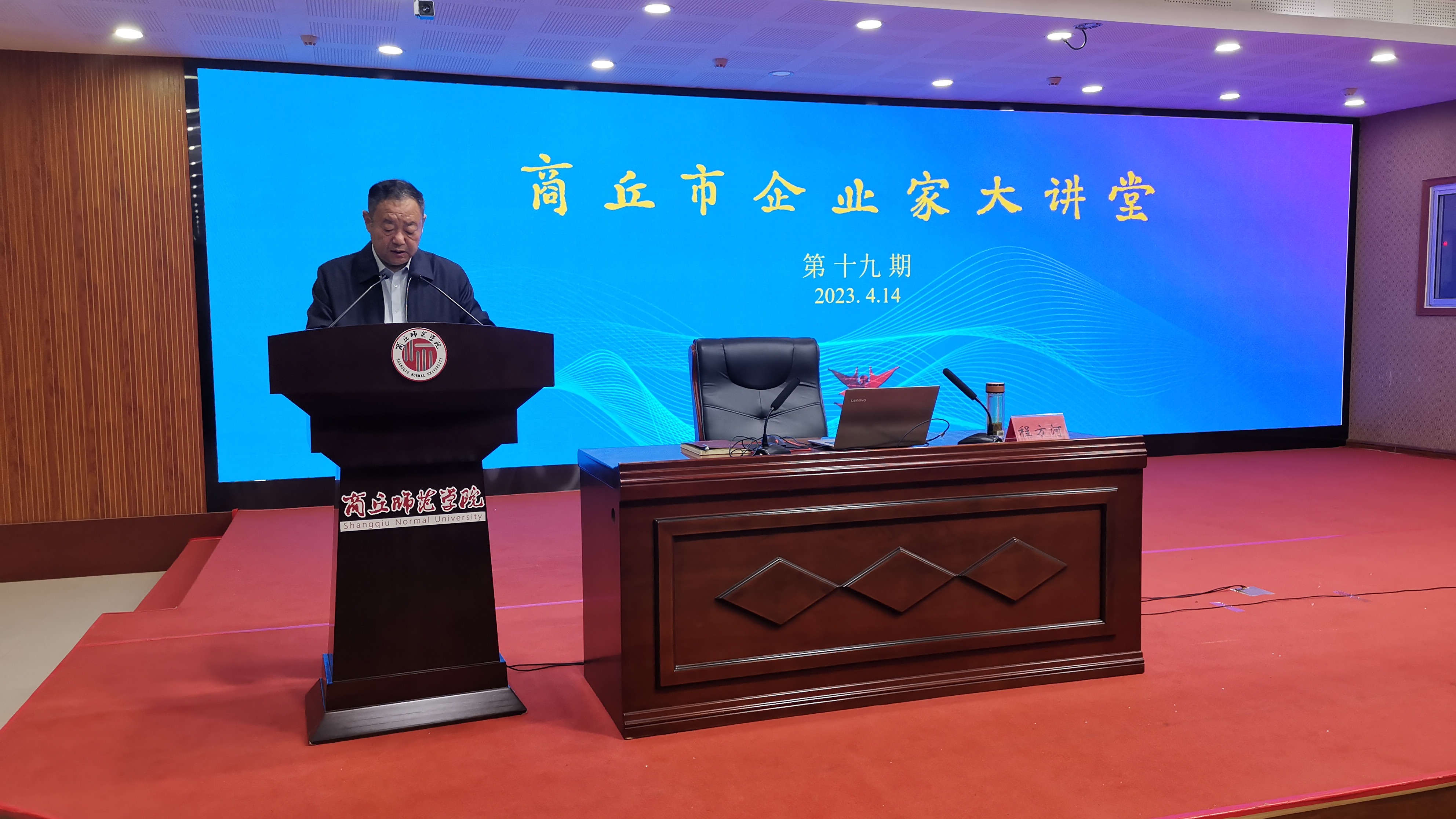4月14日,第十九期商丘市企业家大讲堂在玩滚球官网三商楼报告厅举行。市政府党组成员梁万涛、玩滚球官网副校长程功鹏、有关部门负责人及教师代表,市委有关部委、市直有关单位主要负责同志,睢阳区、梁园区和示范区企业家代表等在主会场参加会议,商丘各县(市区)设立分会场观看直播视频。会议由梁万涛主持。