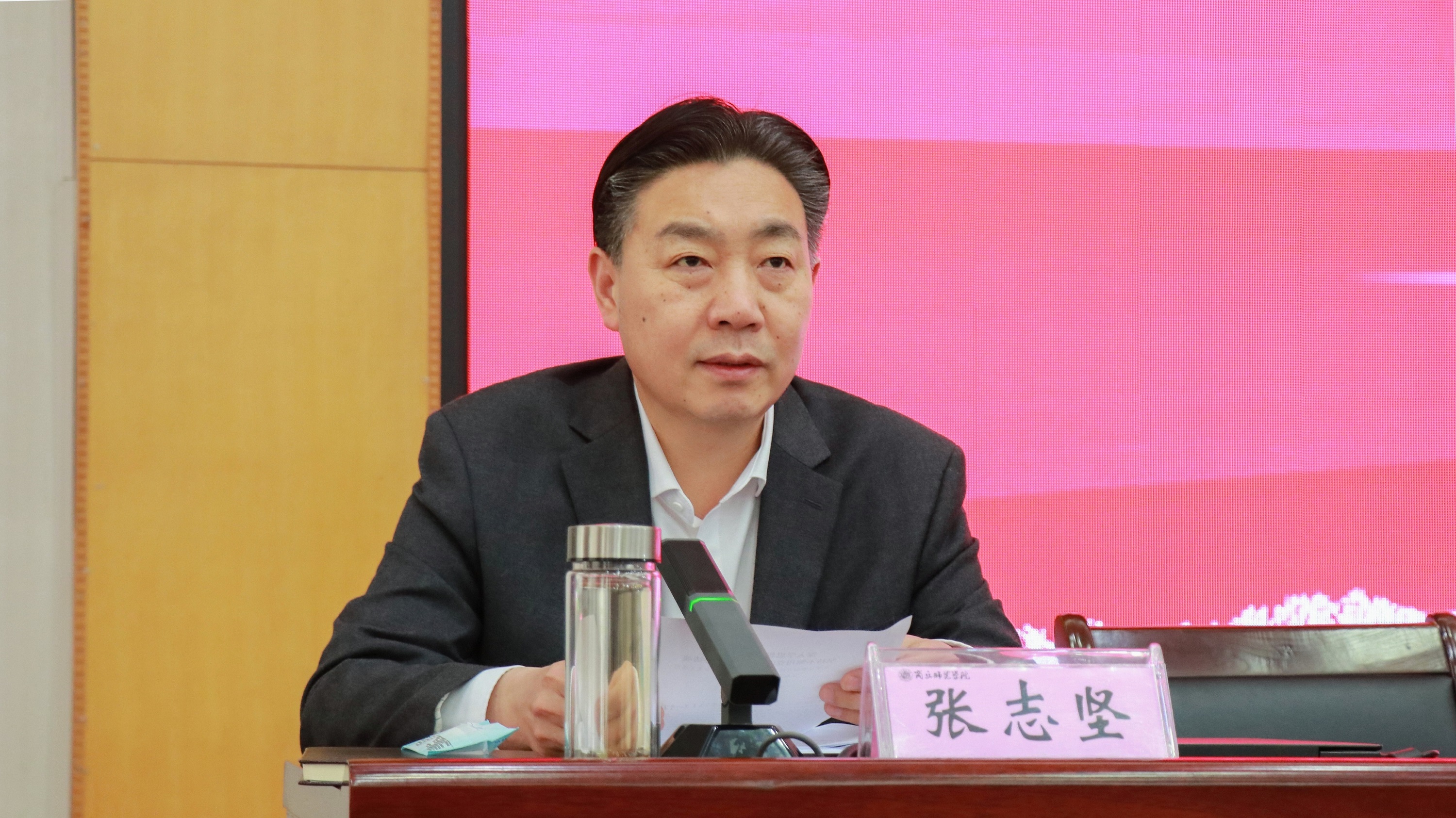 4月21日,玩滚球官网在梁园校区归德楼举办学习贯彻习近平新时代中国特色社会主义思想主题教育读书班。校党委书记张志坚以《深入学思想 着力强党性 坚持不懈用党的创新理论凝心铸魂》为题作了专题辅导讲话。校领导张志坚、陈向炜、李永春、辛作义出席报告会,全体处级干部参加了报告会。校长陈向炜主持开班仪式。
