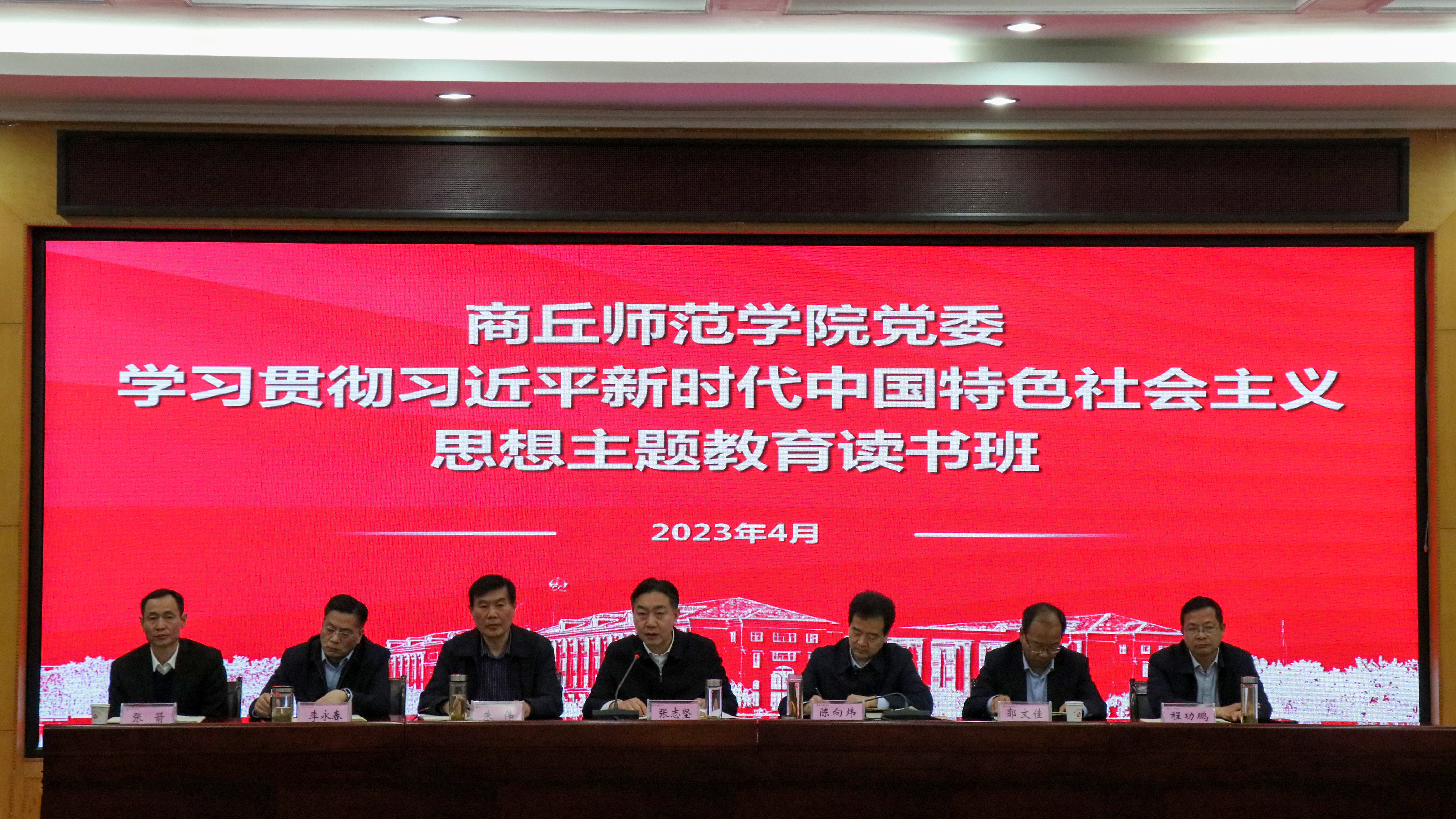 4月23日,玩滚球官网学习贯彻习近平新时代中国特色社会主义思想主题教育读书班(第一期)圆满完成。校领导张志坚、陈向炜、朱伟、李永春、郭文佳、程功鹏、张箭出席,全体中层干部参加会议。校党委书记张志坚主持会议并作总结讲话。