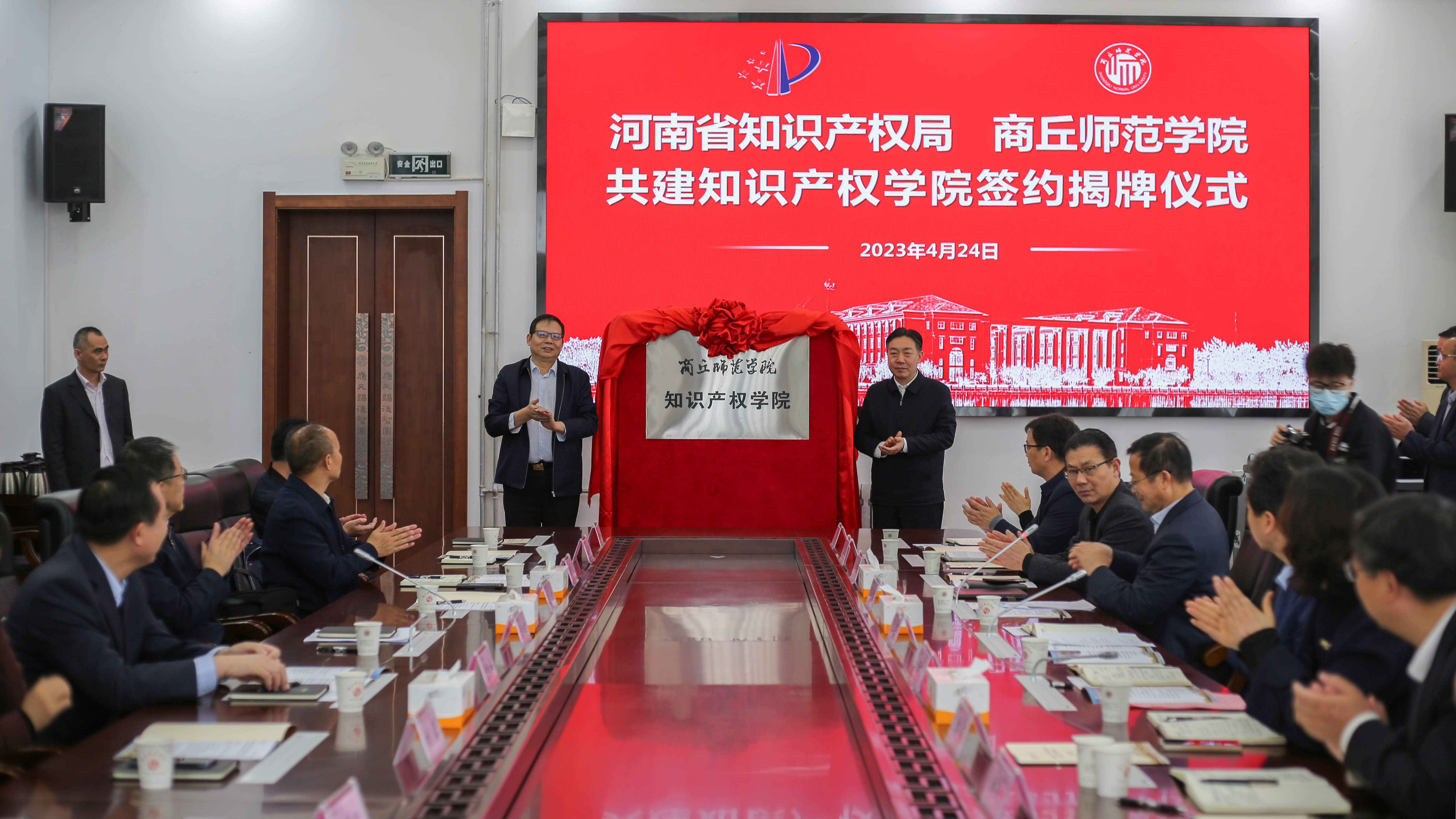 4月24日,河南省知识产权局与玩滚球的十大正规平台共建知识产权学院签约揭牌仪式在玩滚球官网举行。河南省市场监督管理局党组成员刘怀章,河南省维权保护中心主任左斌,河南省市场监督管理局促进处处长梁华义,河南省知识产权维权保护中心办公室副主任刘蕾、一级主任科员姚海燕,商丘市人大常委会副主任曹月坤,商丘市市场监督管理局党组书记马索义、副书记张晓兴,玩滚球官网党委书记张志坚、校长陈向炜、副校长程功鹏出席。玩滚球官网相关部门、法学院(知识产权学院)负责人参加。签约揭牌仪式由程功鹏主持。