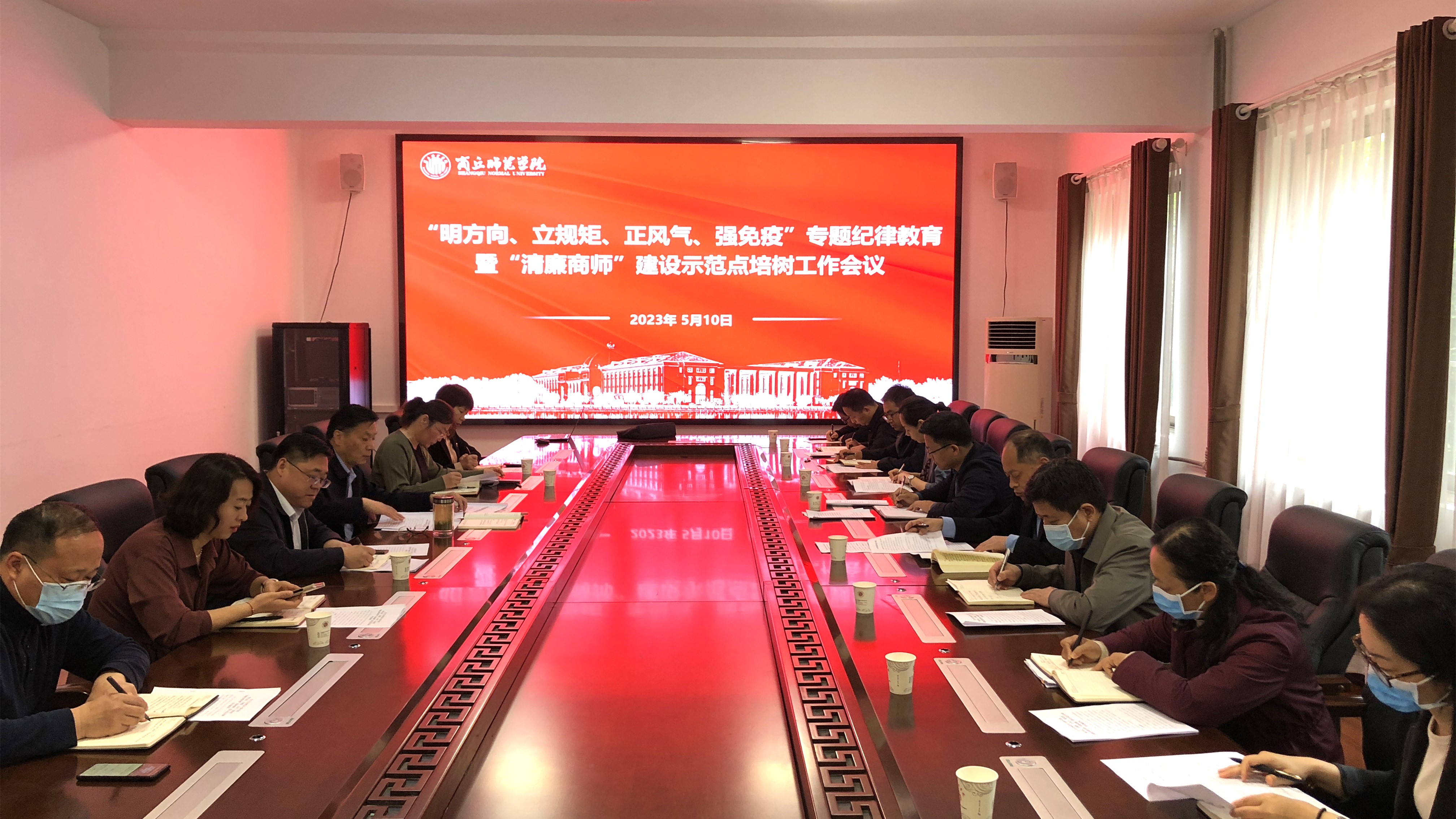 5月10日,玩滚球官网召开“明方向、立规矩、正风气、强免疫”专题纪律教育暨“清廉商师”建设示范点培树工作会议,校纪委书记、监察专员李永春主持会议并讲话,强调要深入学习贯彻习近平总书记关于严明党的纪律和规矩的重要论述,充分发挥清廉建设示范引导作用,推动“清廉商师”创建工作扎实深入开展。