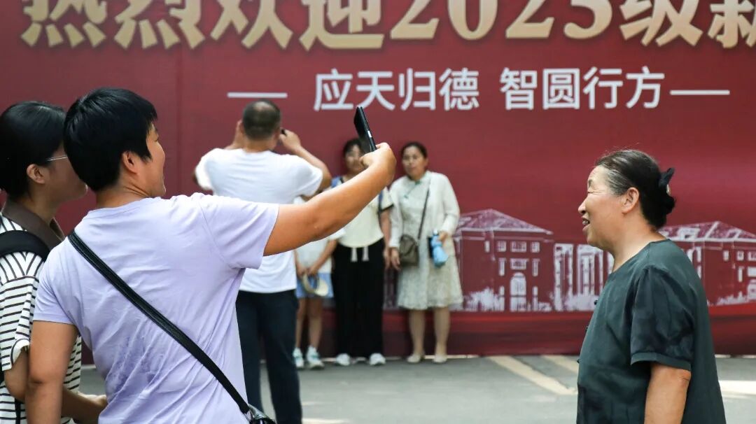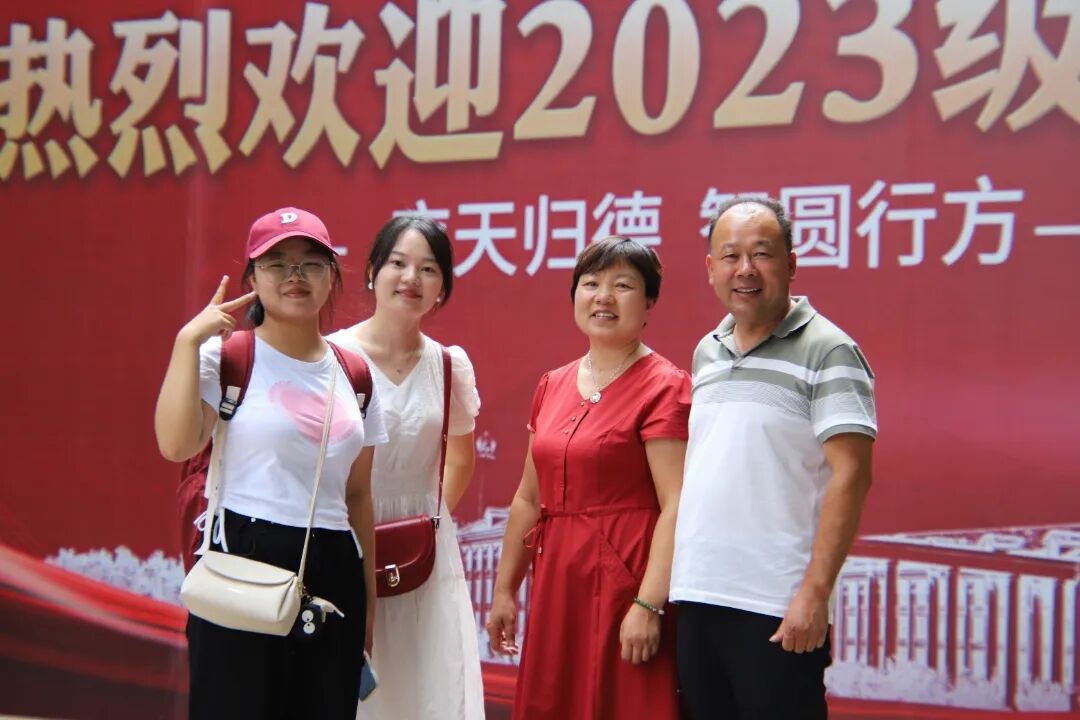 在应天楼前,一位思政老师正对新生父母耐心地讲解着报到流程,共同期盼着大一新生能够在大学期间得到全方位的成长。