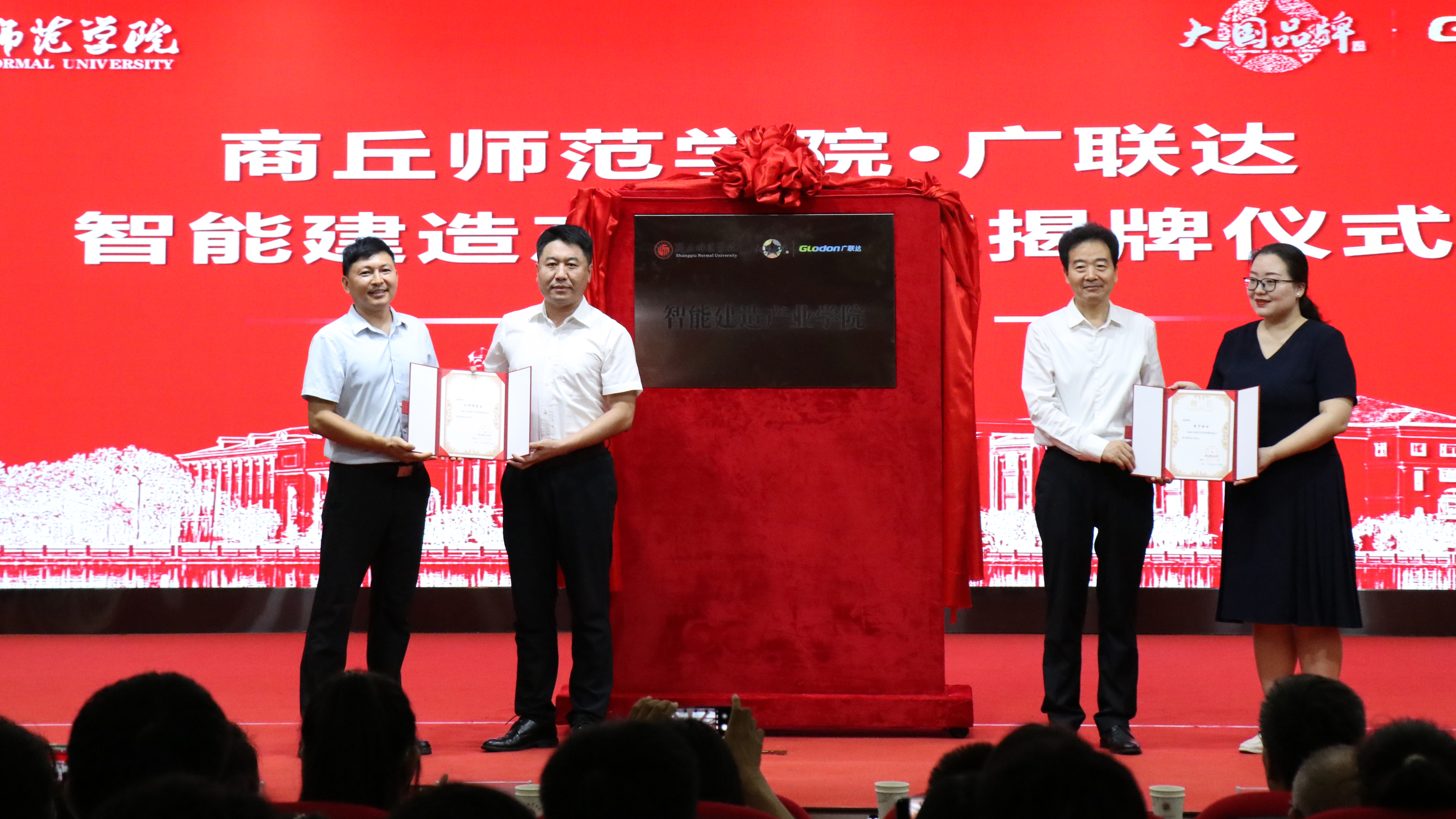企业代表广联达数字教育BU华北大区总经理李宁、广联达数字教育BU方案咨询部总监樊志光、广联达数字教育BU河南区域总经理杨文杰、广联达数字教育BU方案咨询部高级咨询工程师赵阳光,校党政办、校地合作服务中心、建筑工程学院负责同志以及建筑工程学院师生代表等参加了揭牌仪式。